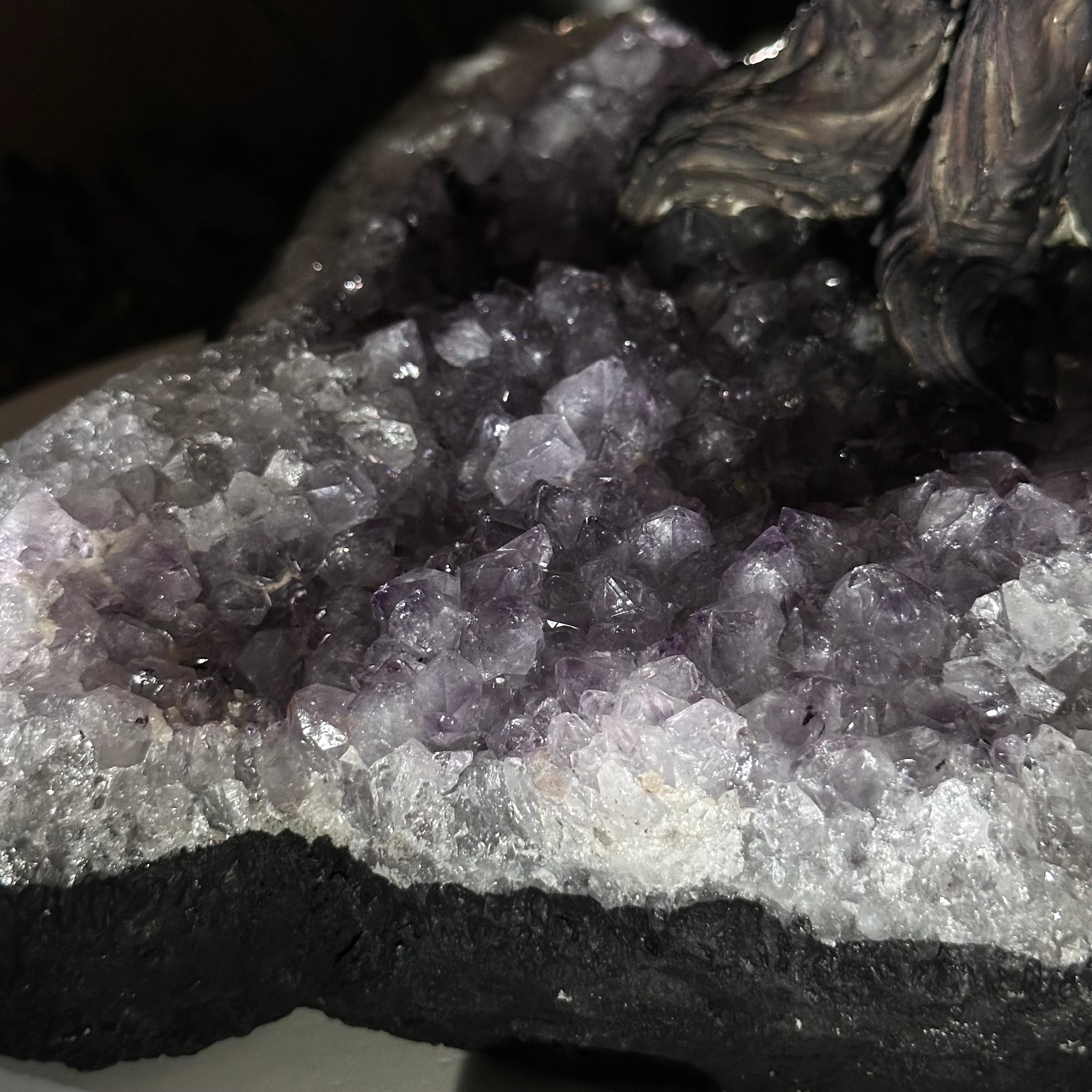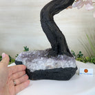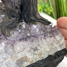 At approximately 21.8" tall to the top of its bark style branches this gemstone tree is both big and a design statement that will impact any room in your home or office. The amethyst clusters used as bases for this size of our gemstone trees are substantial gemstones on their own.