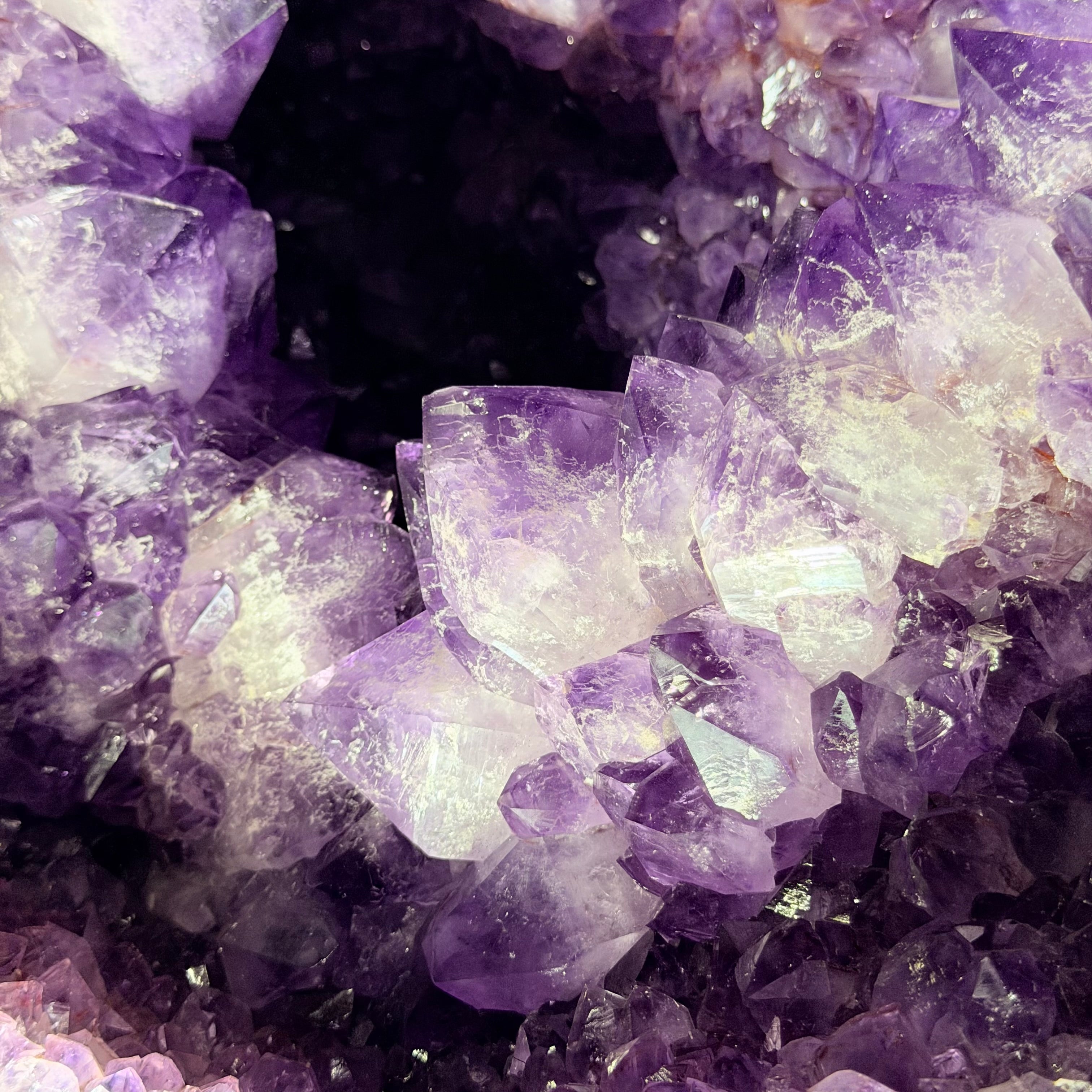 The formation of amethyst is a story of icy beauty crystallizing from a legacy of fire. Basaltic lava can cool with porous cavities that can be 15-feet long. As silica-rich waters run through these cavities, traces of silica leave the seeds of crystalline growth. The water’s iron content gives amethyst its signature purple color. Placement of amethyst in your environment is an invitation to let healing energy and the timelessness of the Earth take your journey to a higher plane. Protect your amethyst stones from direct sunlight to preserve their vibrancy.