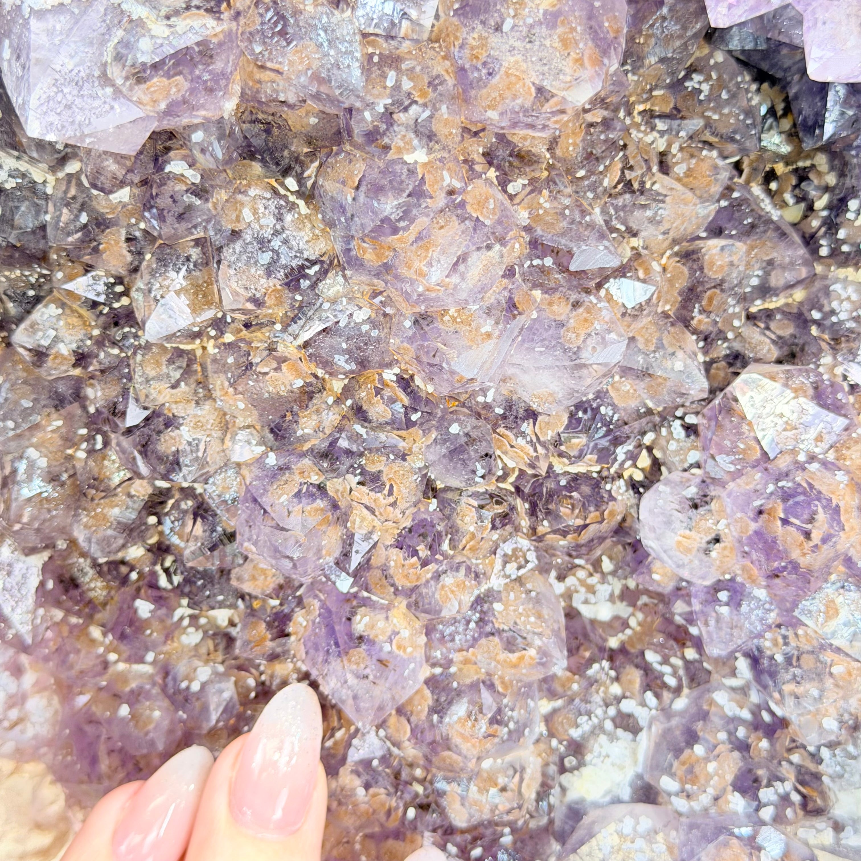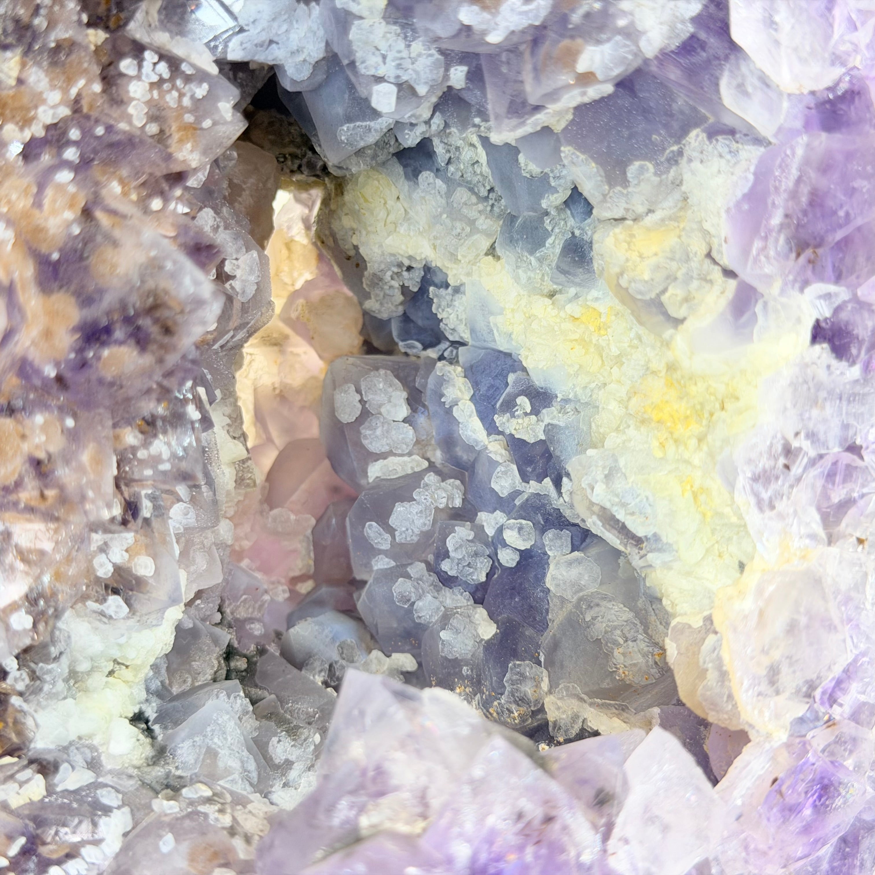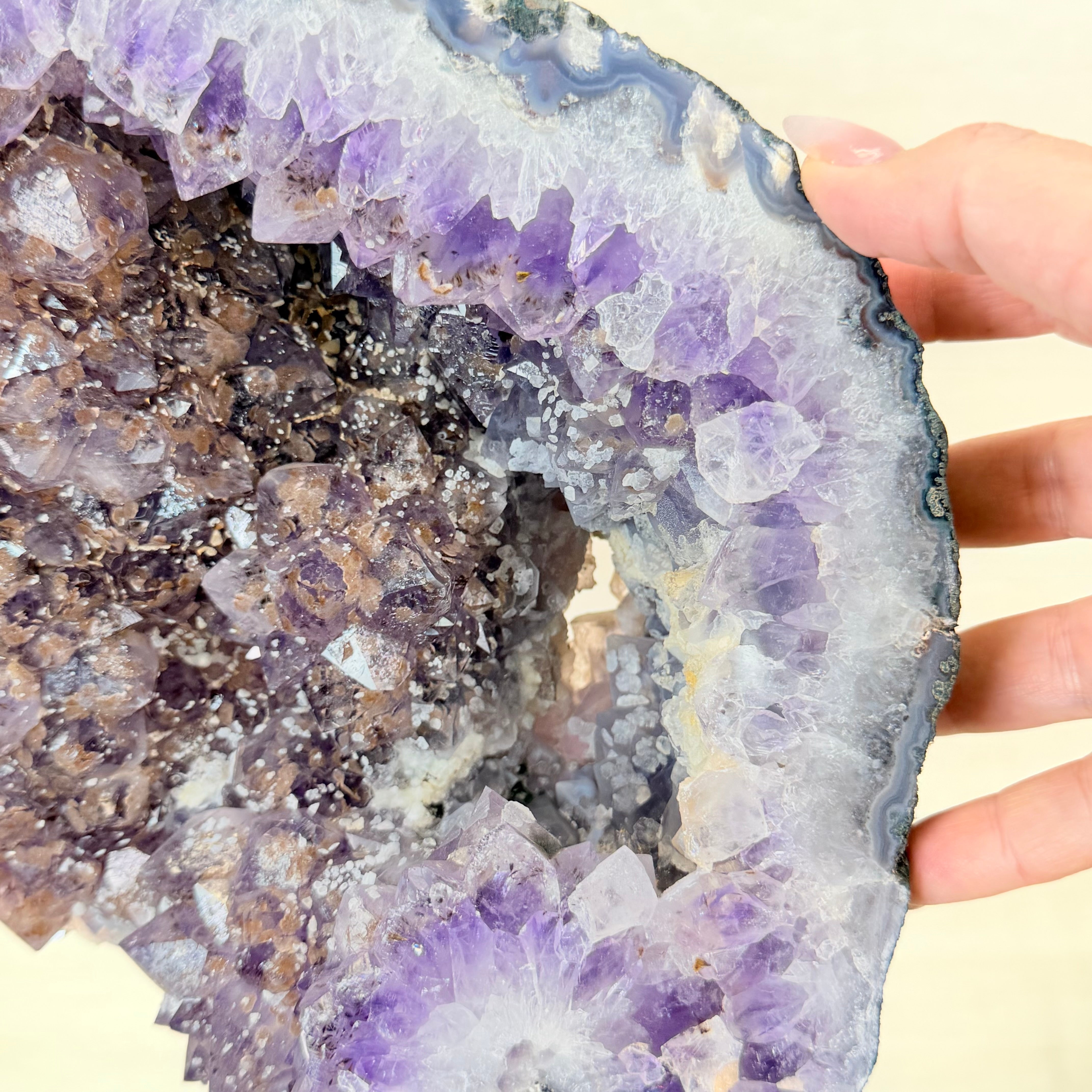 The formation of amethyst is a story of icy beauty crystallizing from a legacy of fire. Basaltic lava can cool with porous cavities that can be 15-feet long. As silica-rich waters run through these cavities, traces of silica leave the seeds of crystalline growth. The water’s iron content gives amethyst its signature purple color. Placement of amethyst in your environment is an invitation to let healing energy and the timelessness of the Earth take your journey to a higher plane. Protect your amethyst stones from direct sunlight to preserve their vibrancy.
