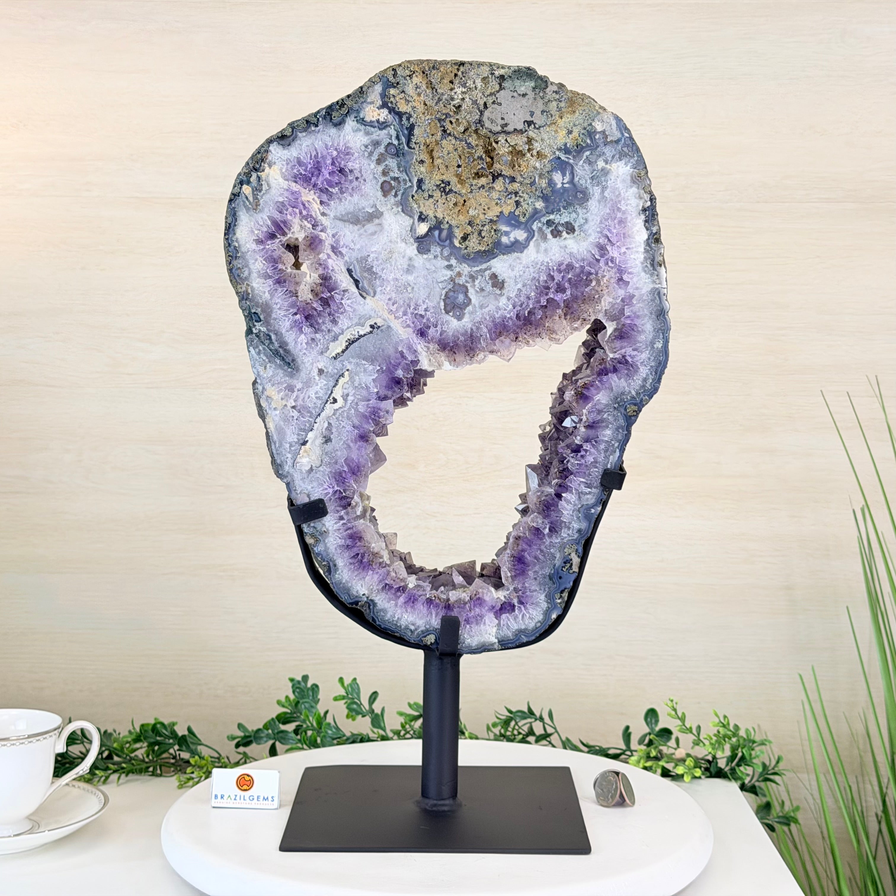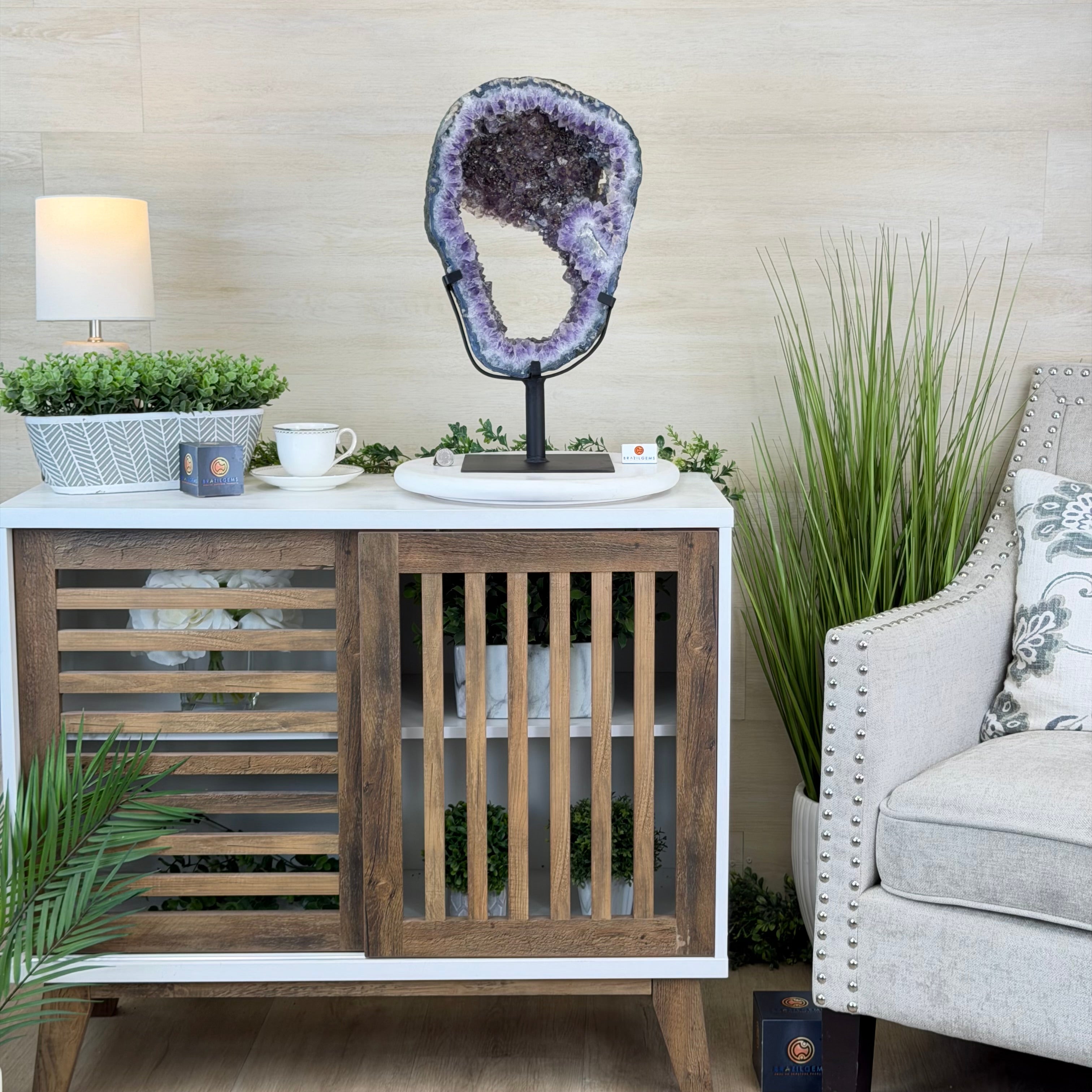 Amethyst Portal on a Metal Stand, 27.5 lbs & 20 inches Tall #5606-0146