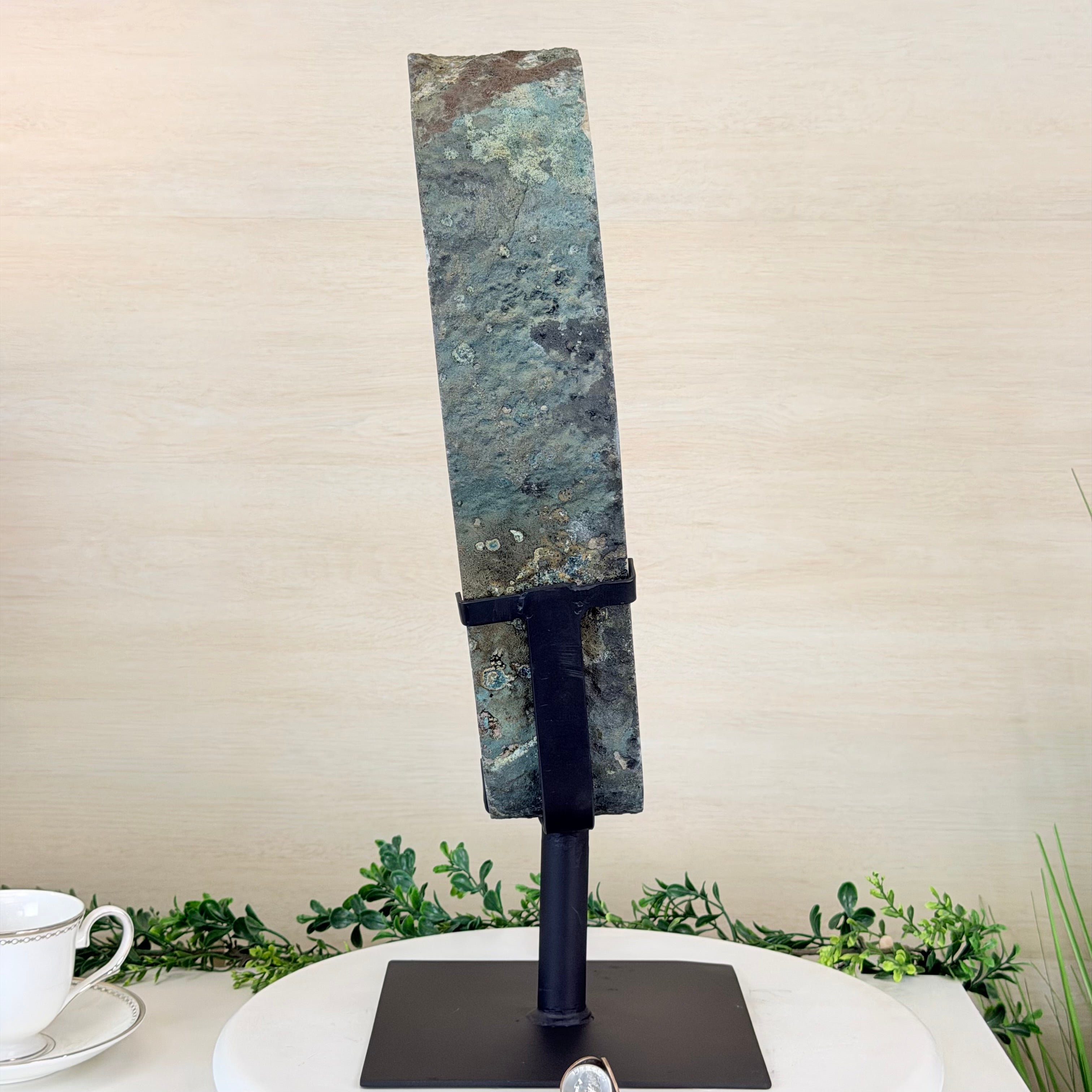 Disclaimer: This is a natural gemstone crystal sold by Brazil Gems® as is and as you see it in its images and video. It is the exact item you will receive. It may contain natural imperfections as well as imperfections, scratches, broken edges and repairs from the extraction, polishing and mounting processes. The base has been custom welded to fit this crystal and painted black.  At Brazil Gems® we make every effort to get measurements as exact as possible but they are done by human hands and eyes and therefore may have minor discrepancies.