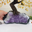 The process to make a gemstone tree like this is very extensive and meticulous. First, an Amethyst cluster is selected for the base, then a resin trunk and branches are crafted into a bonsai style by artisans in Brazil and finally each gemstone is glued to the tree by hand. The result is a work of art that radiates harmony, care, and intention.