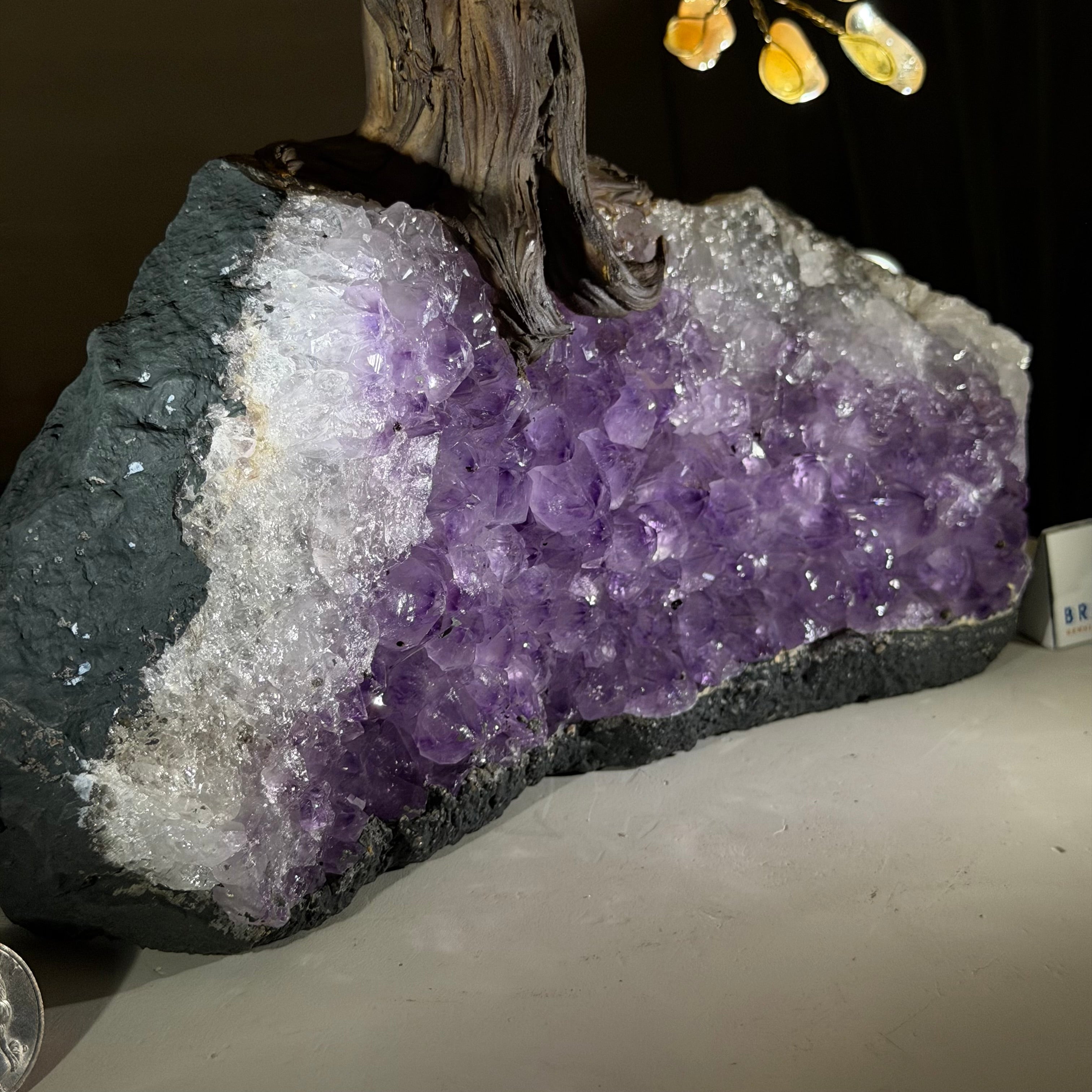 Rooted in a large natural Amethyst cluster, this tree is substantial in size—designed to become a focal point in any room, whether it’s a peaceful home corner or a thoughtful office space. It also makes a meaningful and lasting gift for someone special.