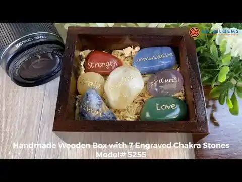 7 Chakra Stones in a Handmade Wooden Box Set, Engraved #5255 by Brazil Gems