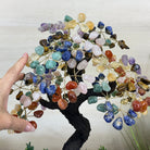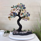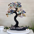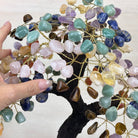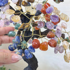 7-Chakra Gemstone Tree on Crystal Cluster Base Handcrafted in Brazil, this striking gemstone tree stands approximately 18" tall and features a sturdy resin trunk with 48 gracefully arched wire branches. Adorned with 240 polished chakra gemstones, it beautifully represents these seven chakras: