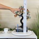 Disclaimer: This is a genuine gemstone handmade item sold by Brazil Gems® as is and as you see it in its images and video. It is the exact tree you will receive. The base may contain natural imperfections as well as imperfections, repairs and broken edges from the extraction, polishing, and prepping processes and the branches and leaf gemstones may contain imperfections as well. To allow for it to stand on its own the amethyst cluster base may have a small amount of cement added to the bottom then painted black. At Brazil Gems® we make every effort to get measurements as exact as possible but they are done by human hands and eyes and therefore may have minor discrepancies. During shipping, it's possible a gemstone "leaf" might come off a branch, it's simple to fix with hot glue or super glue.