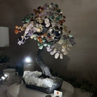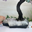 Disclaimer: This is a genuine gemstone handmade item sold by Brazil Gems® as is and as you see it in its images and video. It is the exact tree you will receive. The base may contain natural imperfections as well as imperfections, repairs and broken edges from the extraction, polishing, and prepping processes and the branches and leaf gemstones may contain imperfections as well. To allow for it to stand on its own the amethyst cluster base may have a small amount of cement added to the bottom then painted black. At Brazil Gems® we make every effort to get measurements as exact as possible but they are done by human hands and eyes and therefore may have minor discrepancies. During shipping, it's possible a gemstone "leaf" might come off a branch, it's simple to fix with hot glue or super glue.