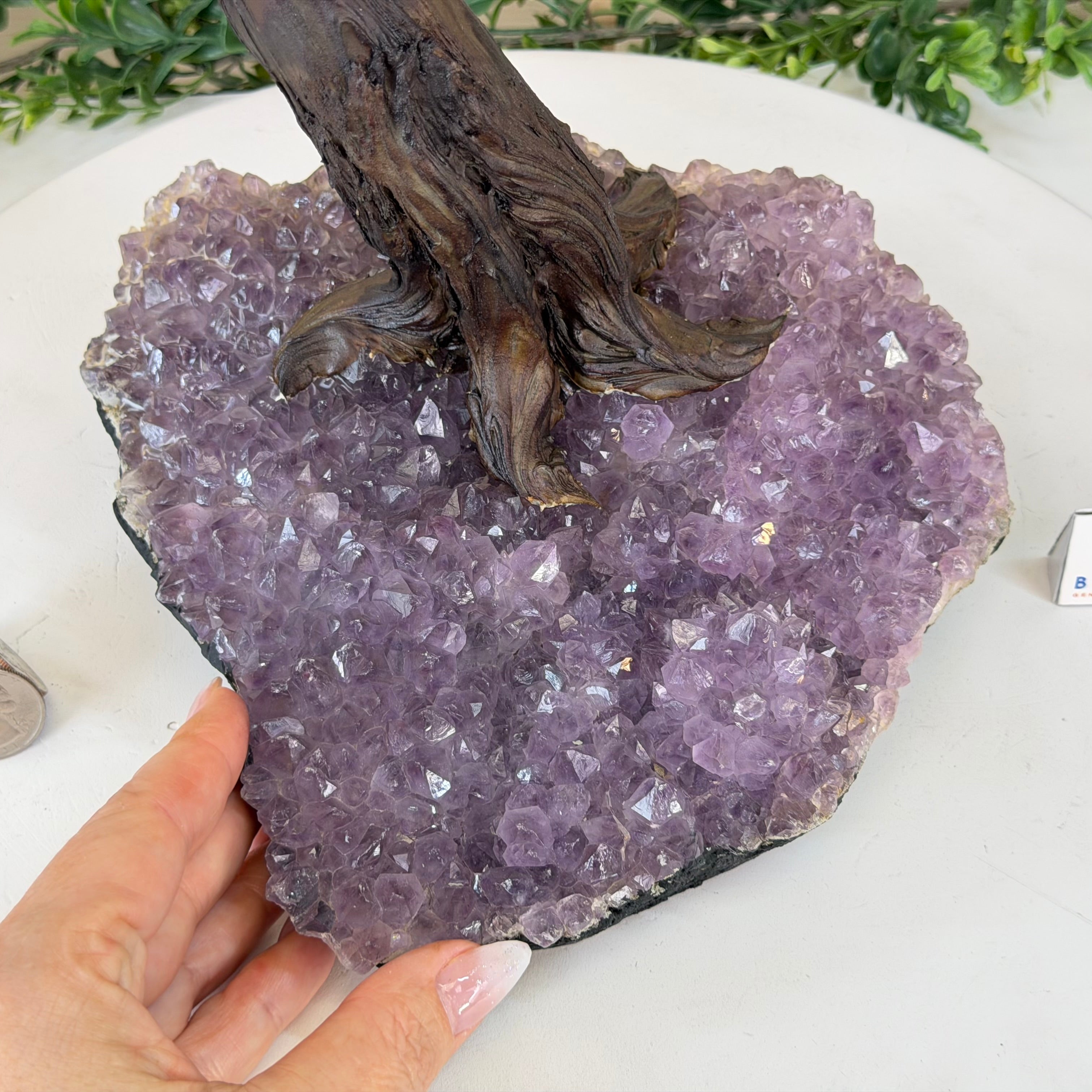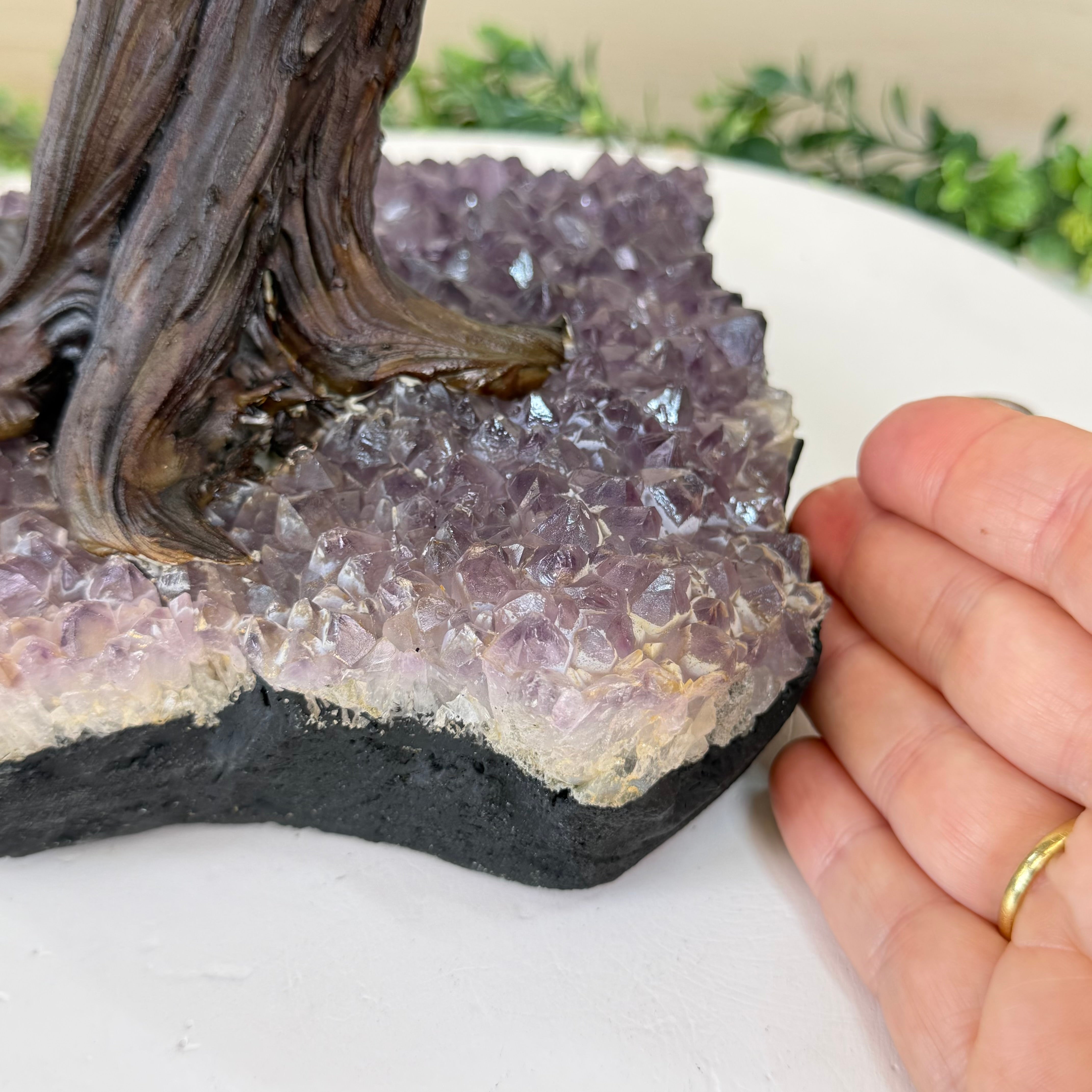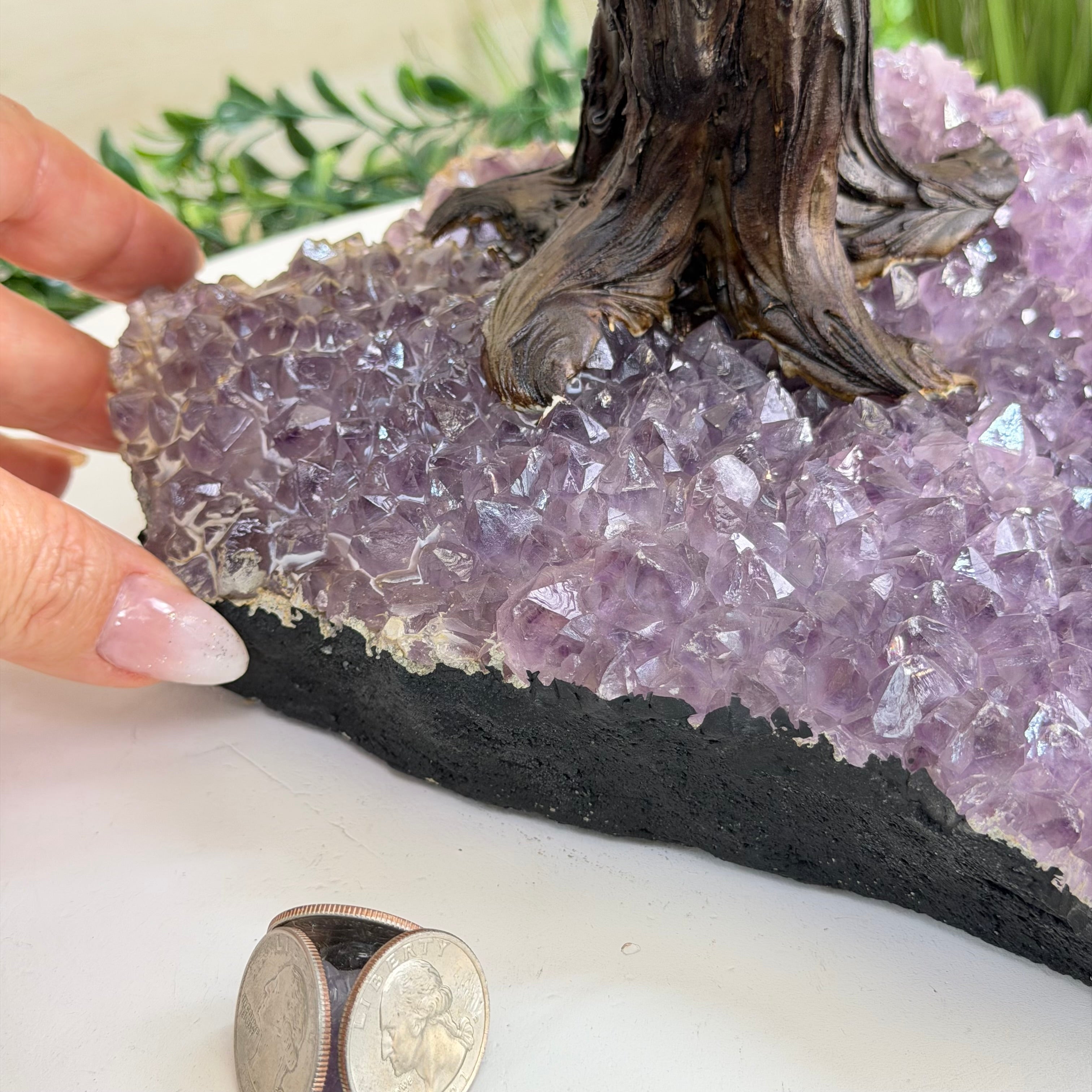 Rooted in a large natural Amethyst cluster, this tree is substantial in size—designed to become a focal point in any room, whether it’s a peaceful home corner or a thoughtful office space. It also makes a meaningful and lasting gift for someone special.