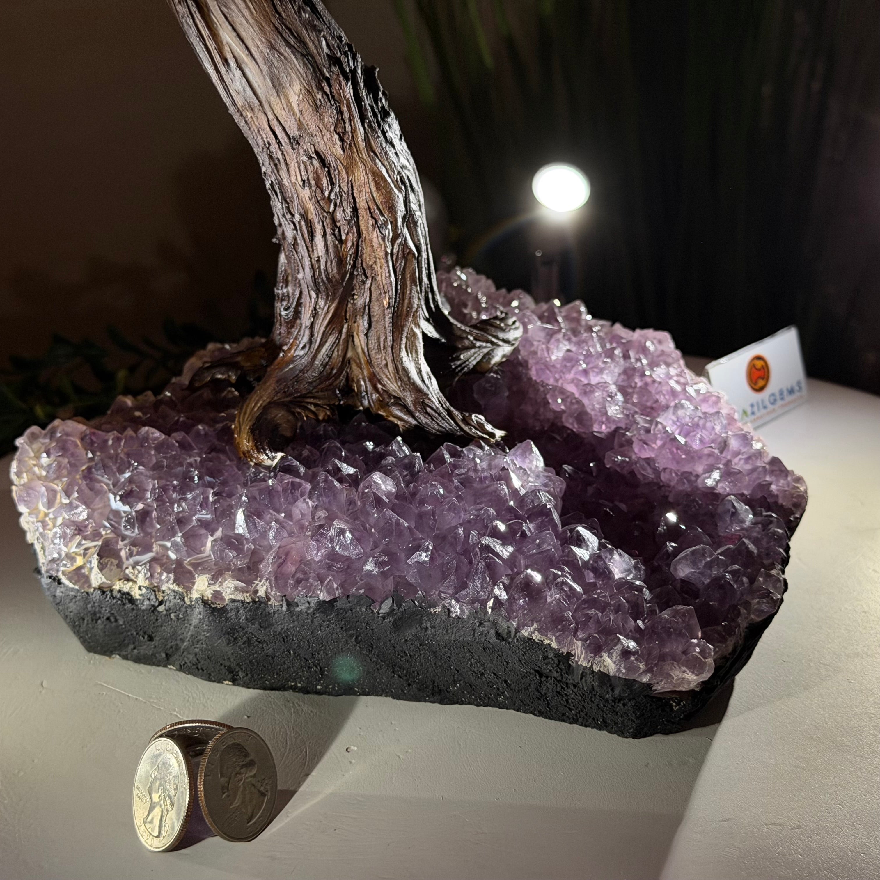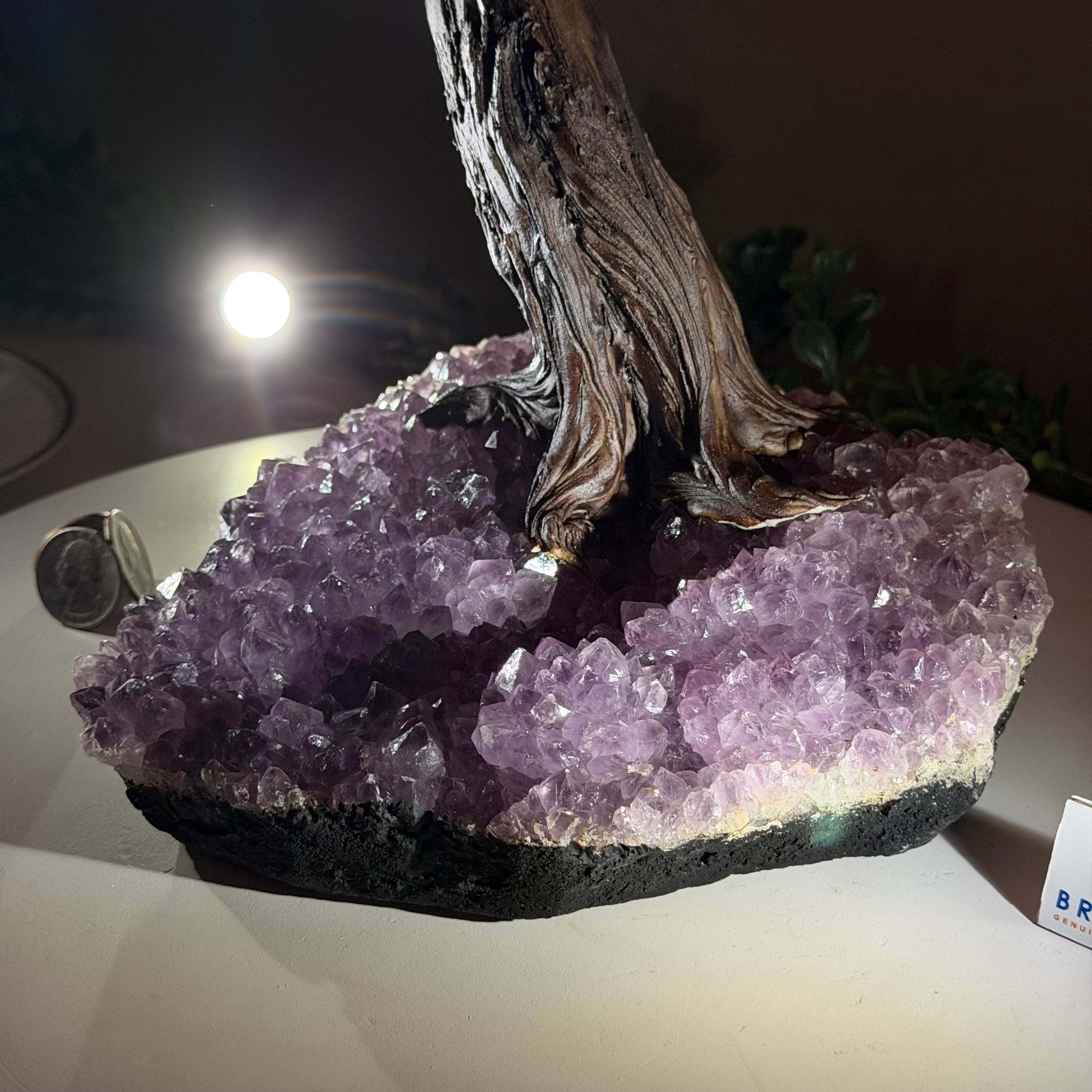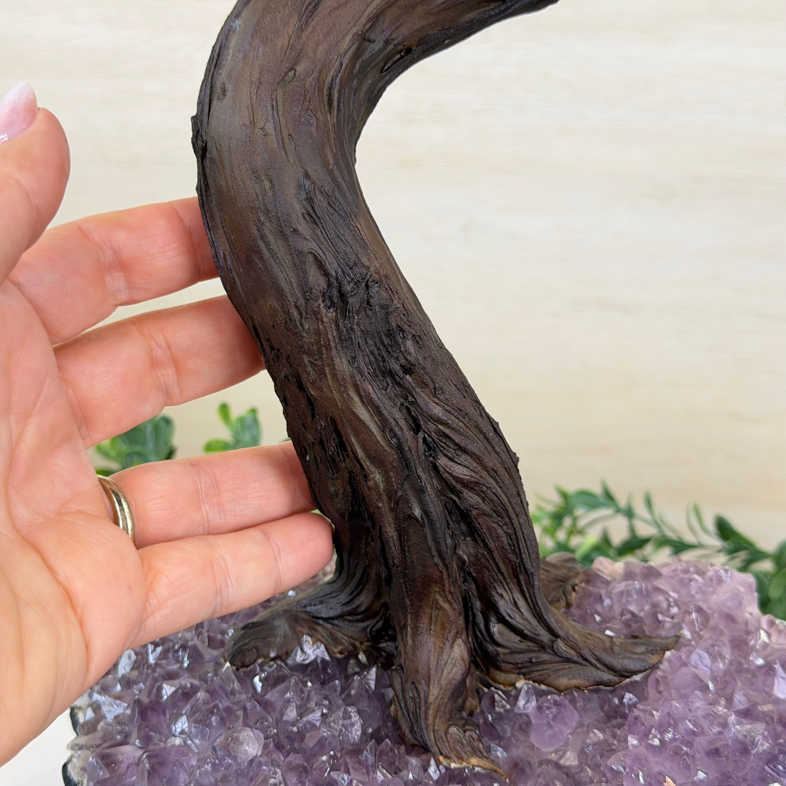 Rooted in a large natural Amethyst cluster, this tree is substantial in size—designed to become a focal point in any room, whether it’s a peaceful home corner or a thoughtful office space. It also makes a meaningful and lasting gift for someone special.