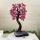 17" Tall Pink Agate Bonsai Gemstone Tree, Amethyst Base, 240 Gems #5405PNKA-001