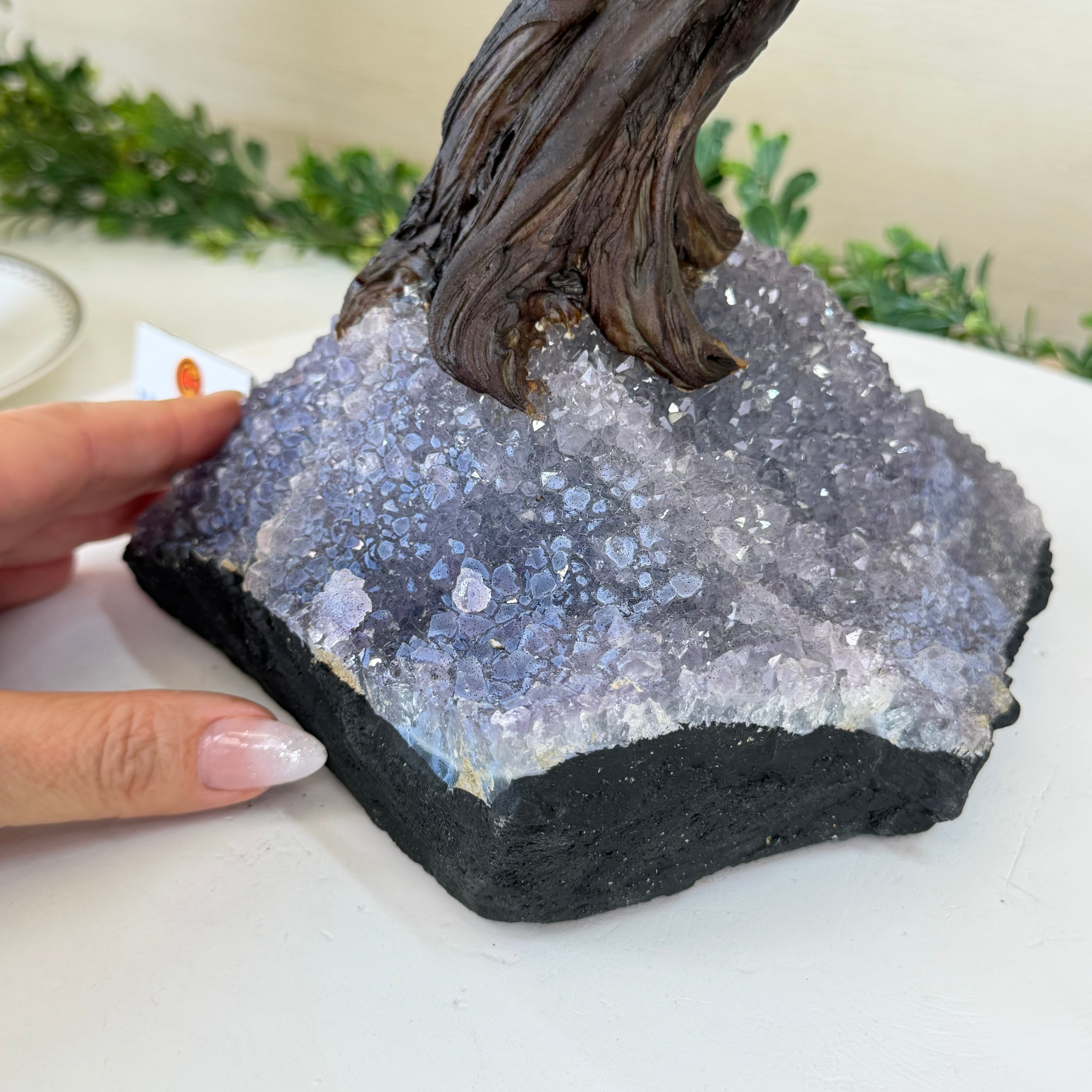 Rooted in a large natural Amethyst cluster, this tree is substantial in size—designed to become a focal point in any room, whether it’s a peaceful home corner or a thoughtful office space. It also makes a meaningful and lasting gift for someone special.