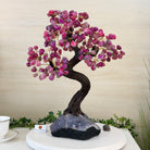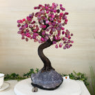 17" Tall Pink Agate Bonsai Gemstone Tree, Amethyst Base, 240 Gems #5405PNKA-002