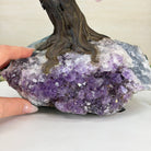 The process to make a gemstone tree like this is very extensive and meticulous. First, an Amethyst cluster is selected for the base, then a resin trunk and branches are crafted into a bonsai style by artisans in Brazil and finally each gemstone is glued to the tree by hand. The result is a work of art that radiates harmony, care, and intention.
