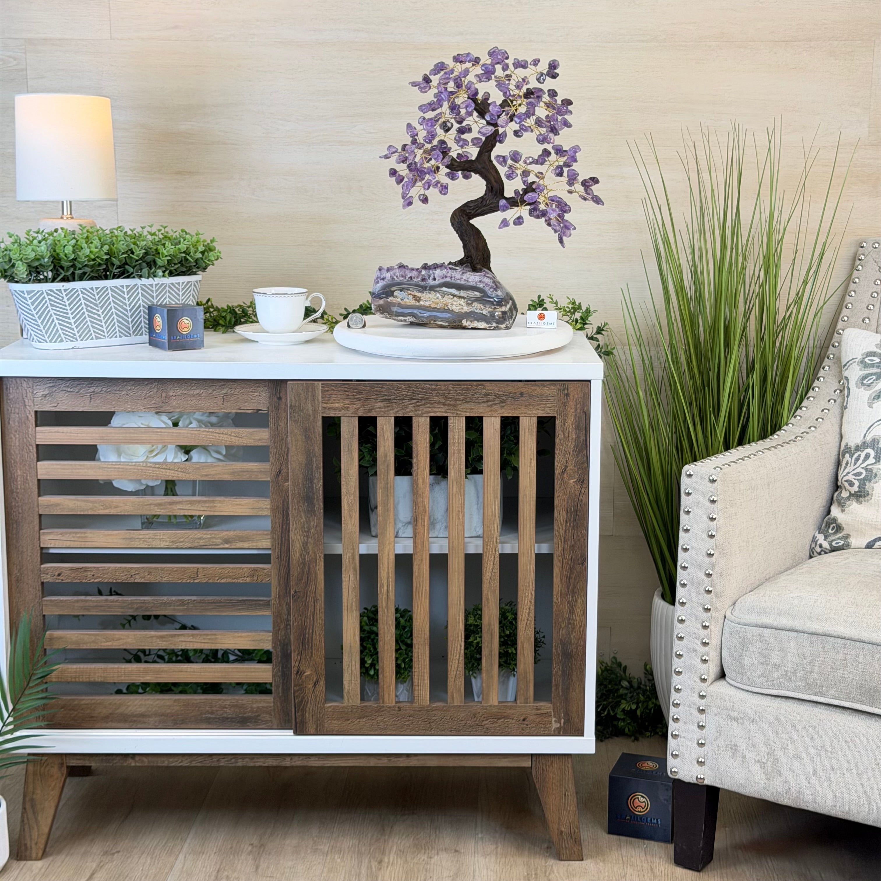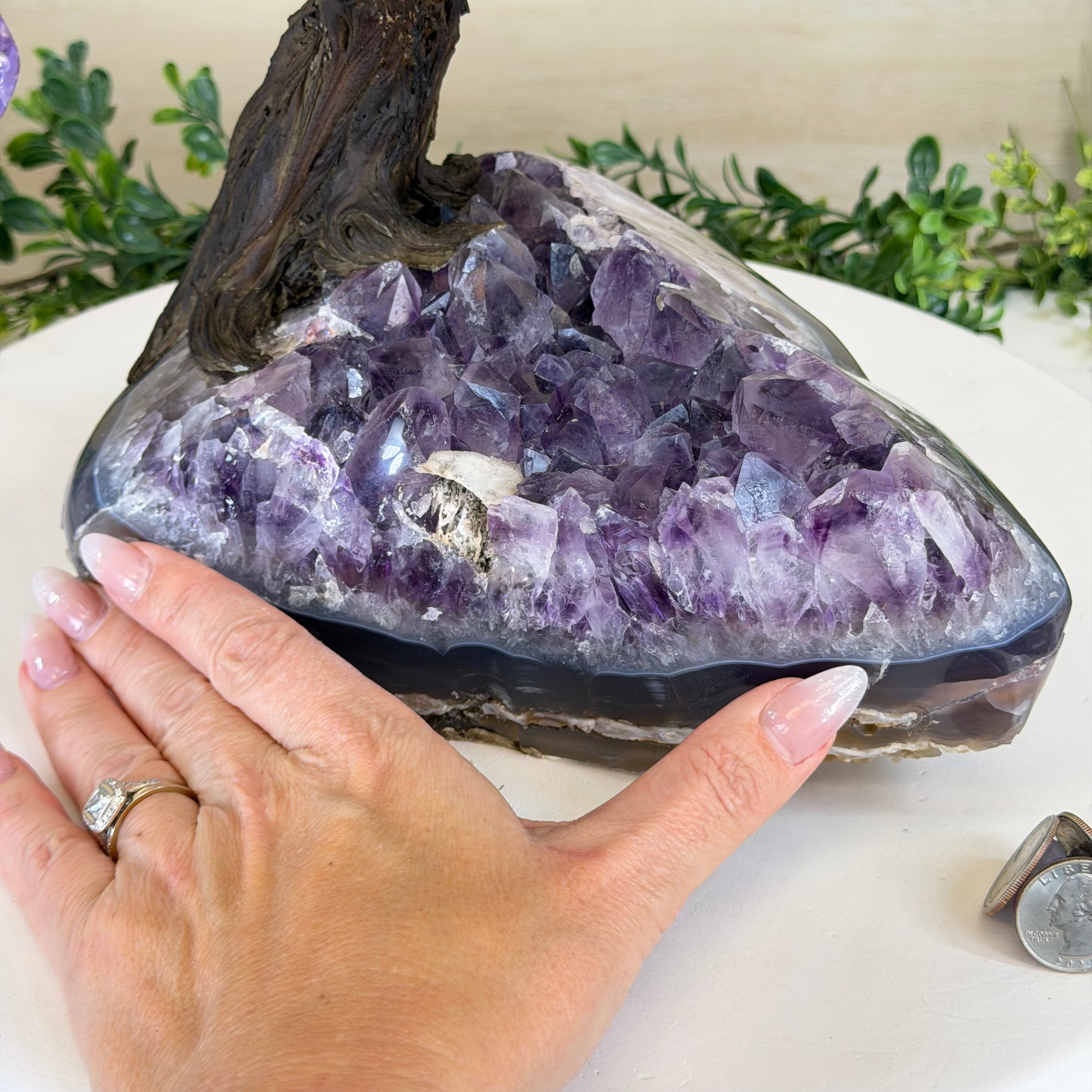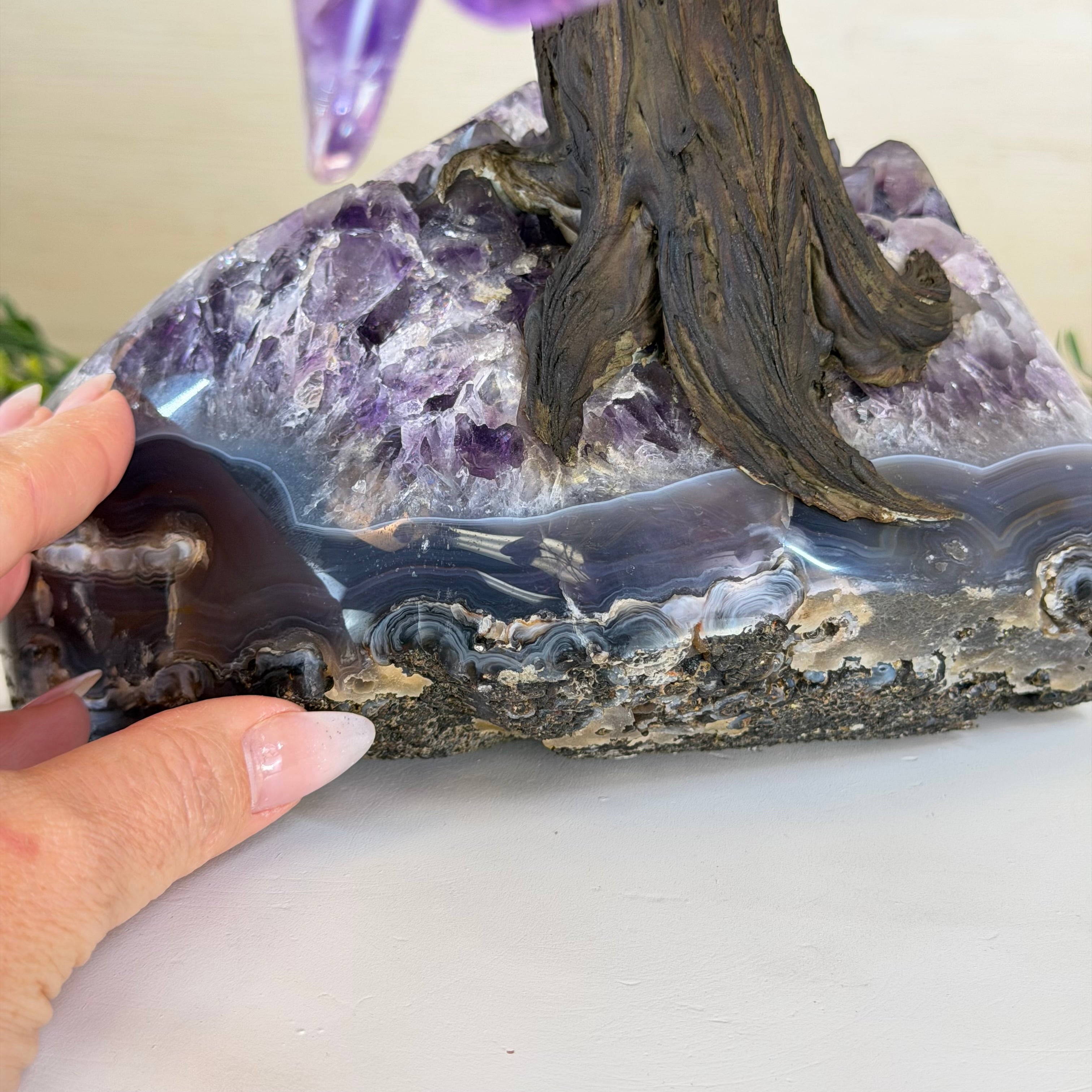 Rooted in a large natural Amethyst cluster, this tree is substantial in size—designed to become a focal point in any room, whether it’s a peaceful home corner or a thoughtful office space. It also makes a meaningful and lasting gift for someone special.