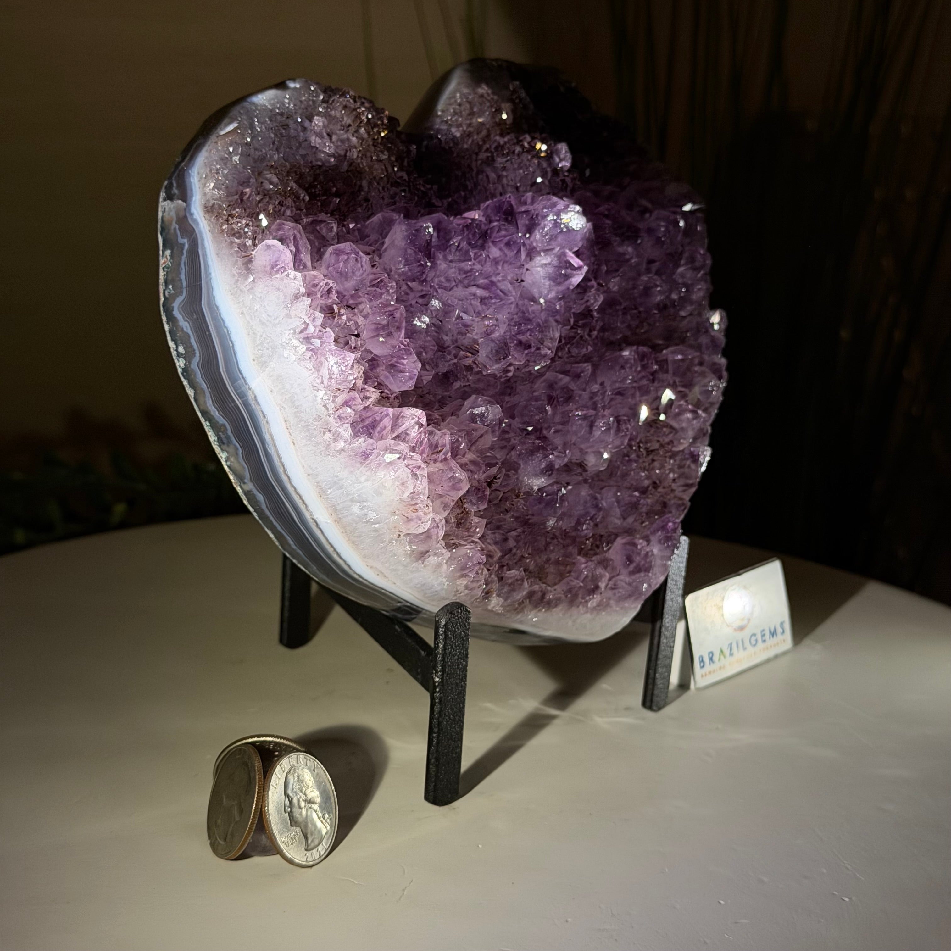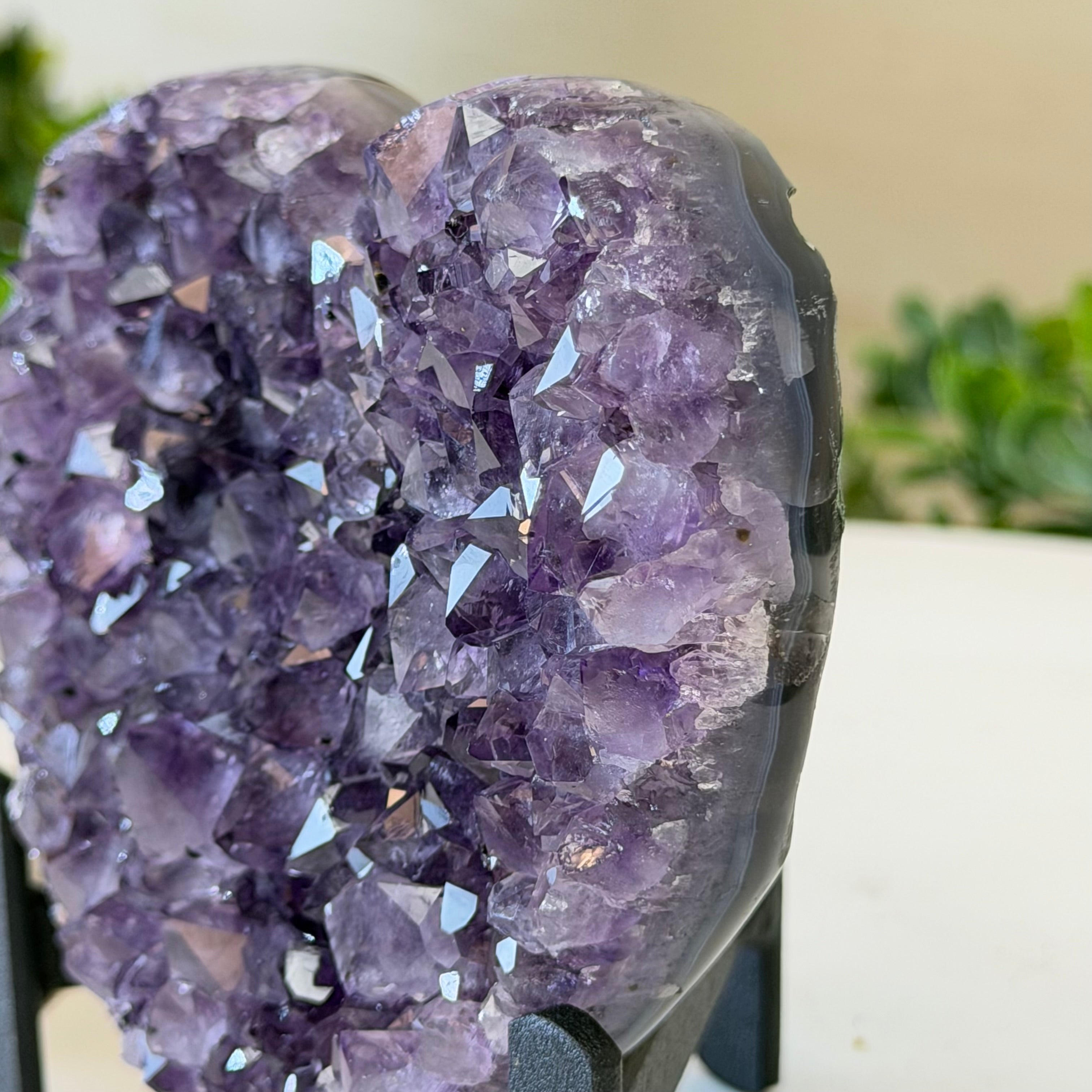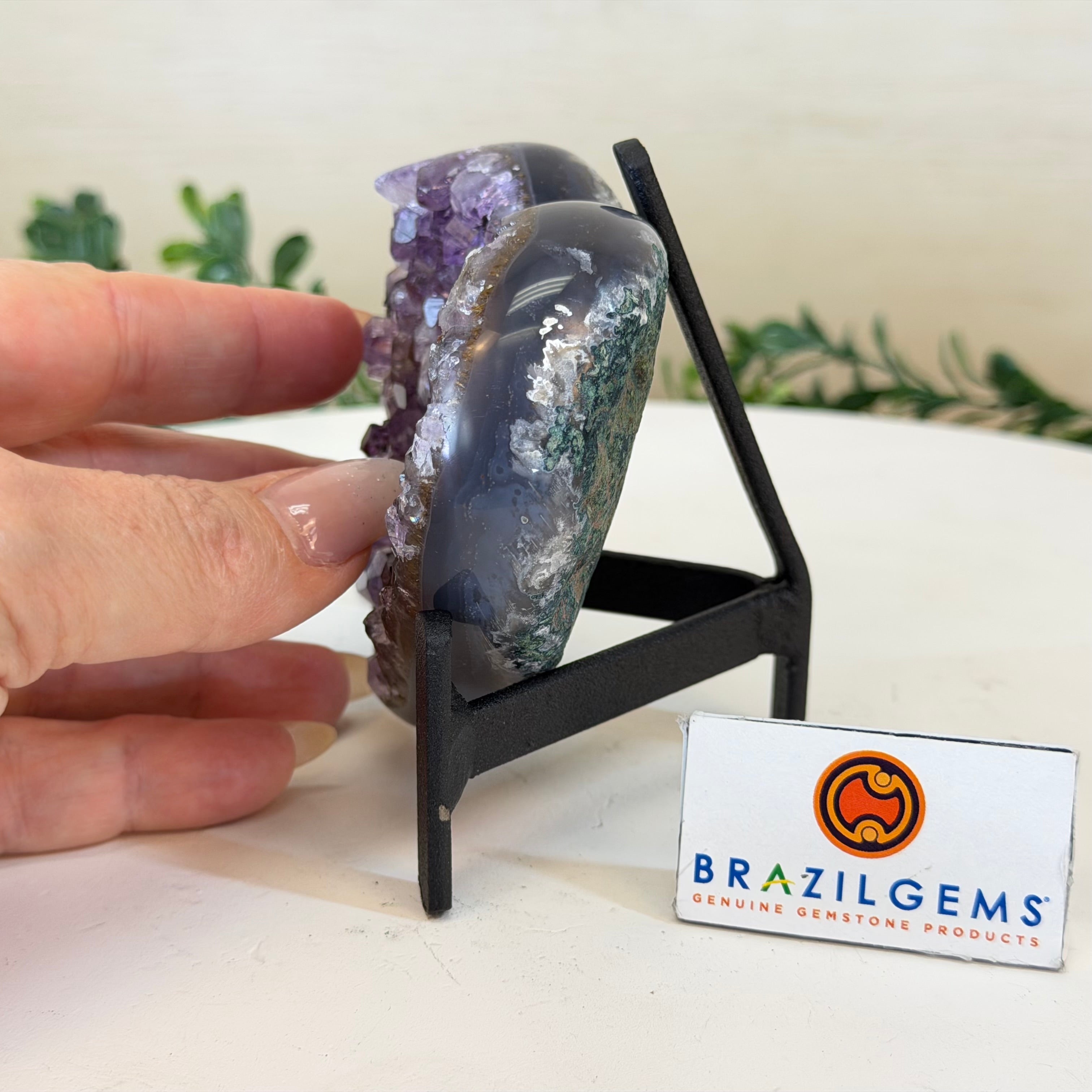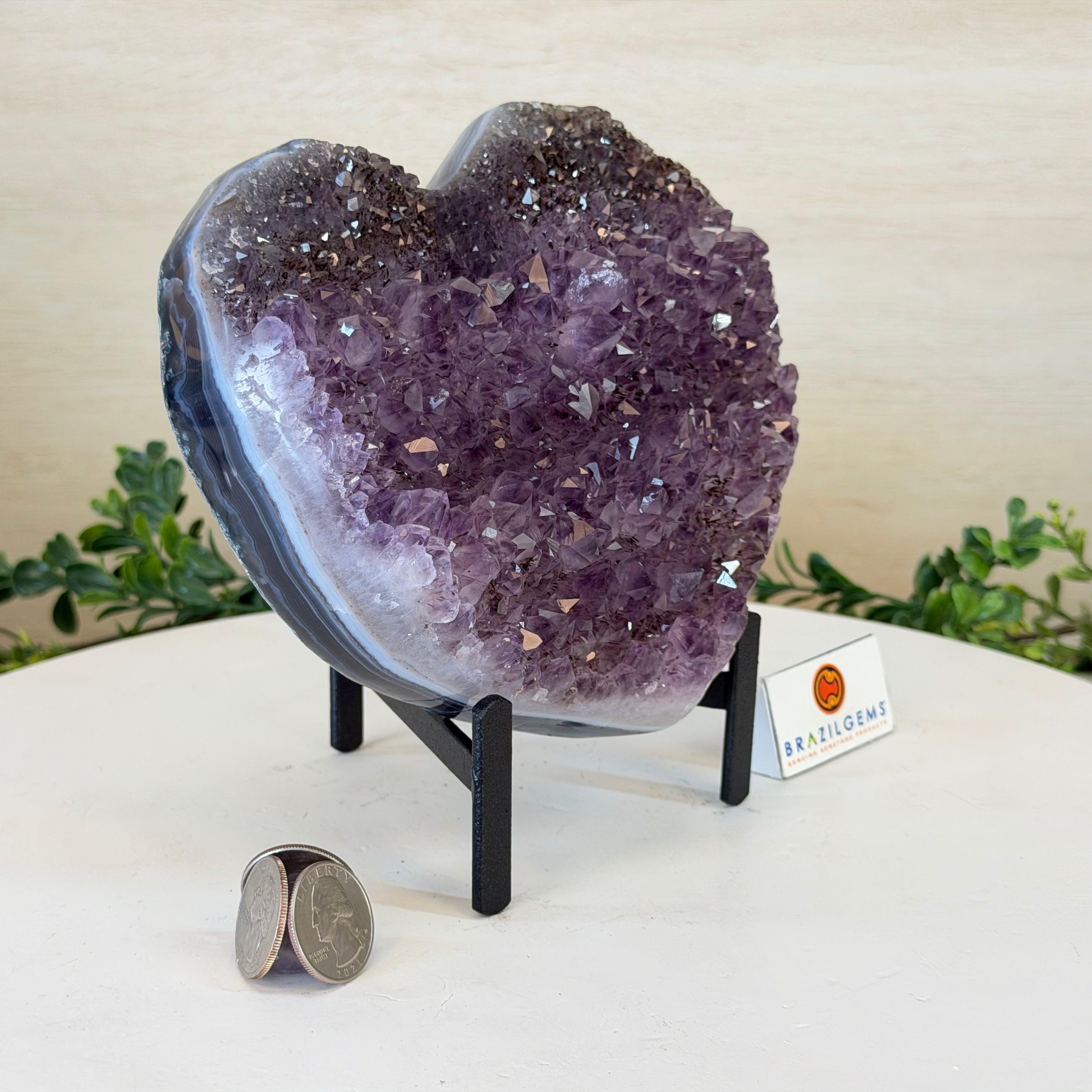 Brazil Gems® imports beautifully hand polished Geode Hearts from Brazil. Artisans in South Brazil mastered the technique to make geode hearts, a very labor-intensive task that requires a lot of skill and precision. The result is a beautiful piece that will certainly make a statement in any room. These heart-shaped geodes also make wonderful, long-lasting gifts for loved ones.