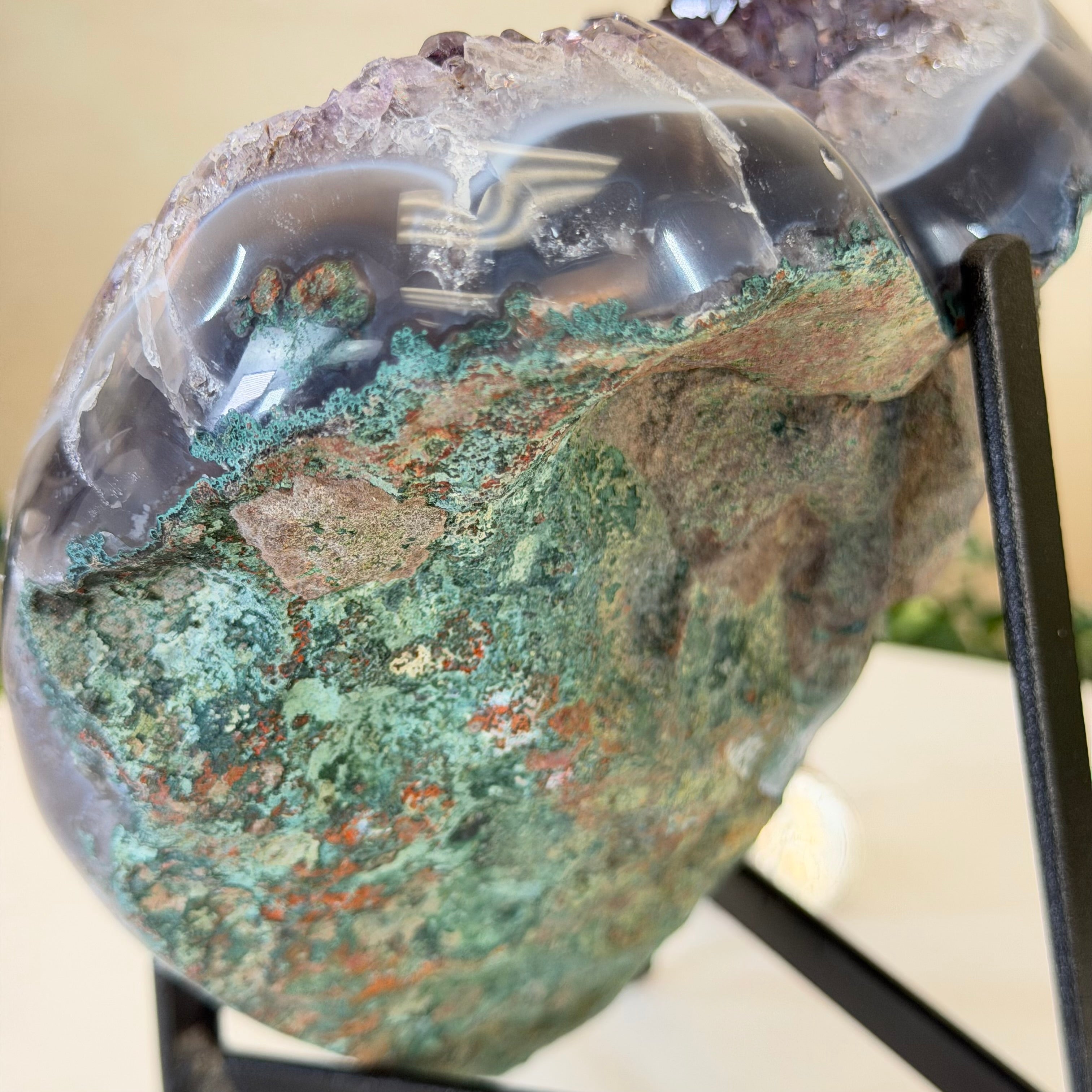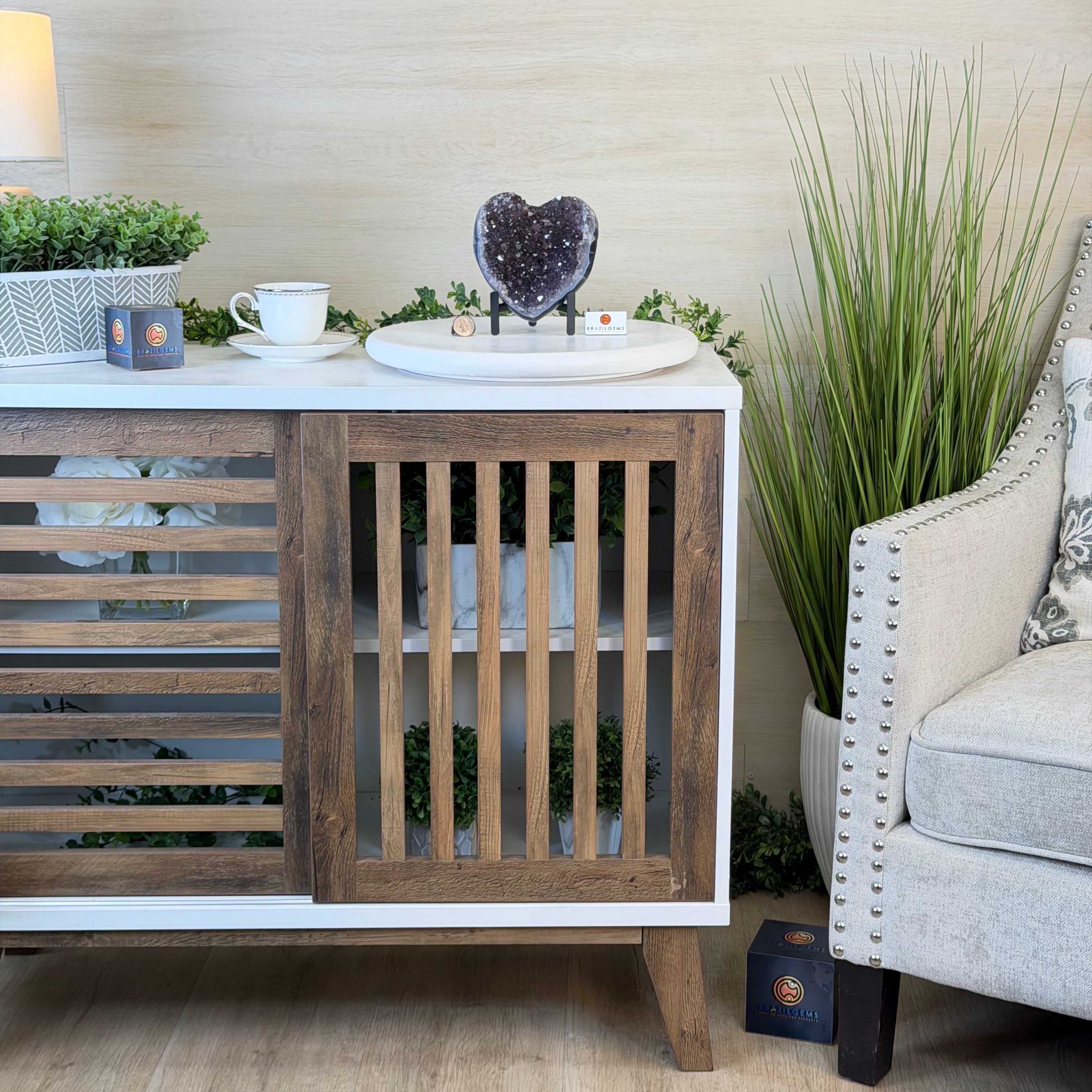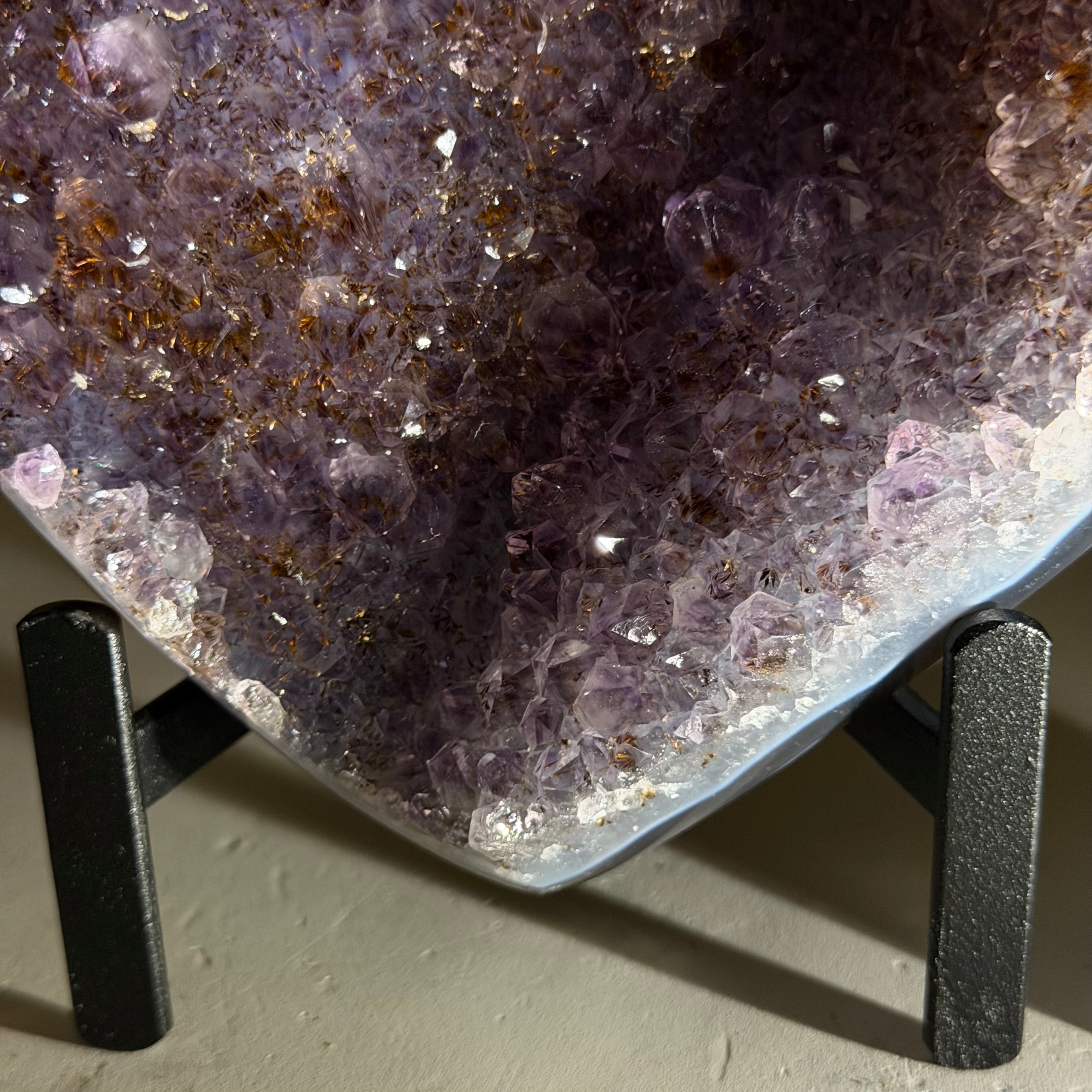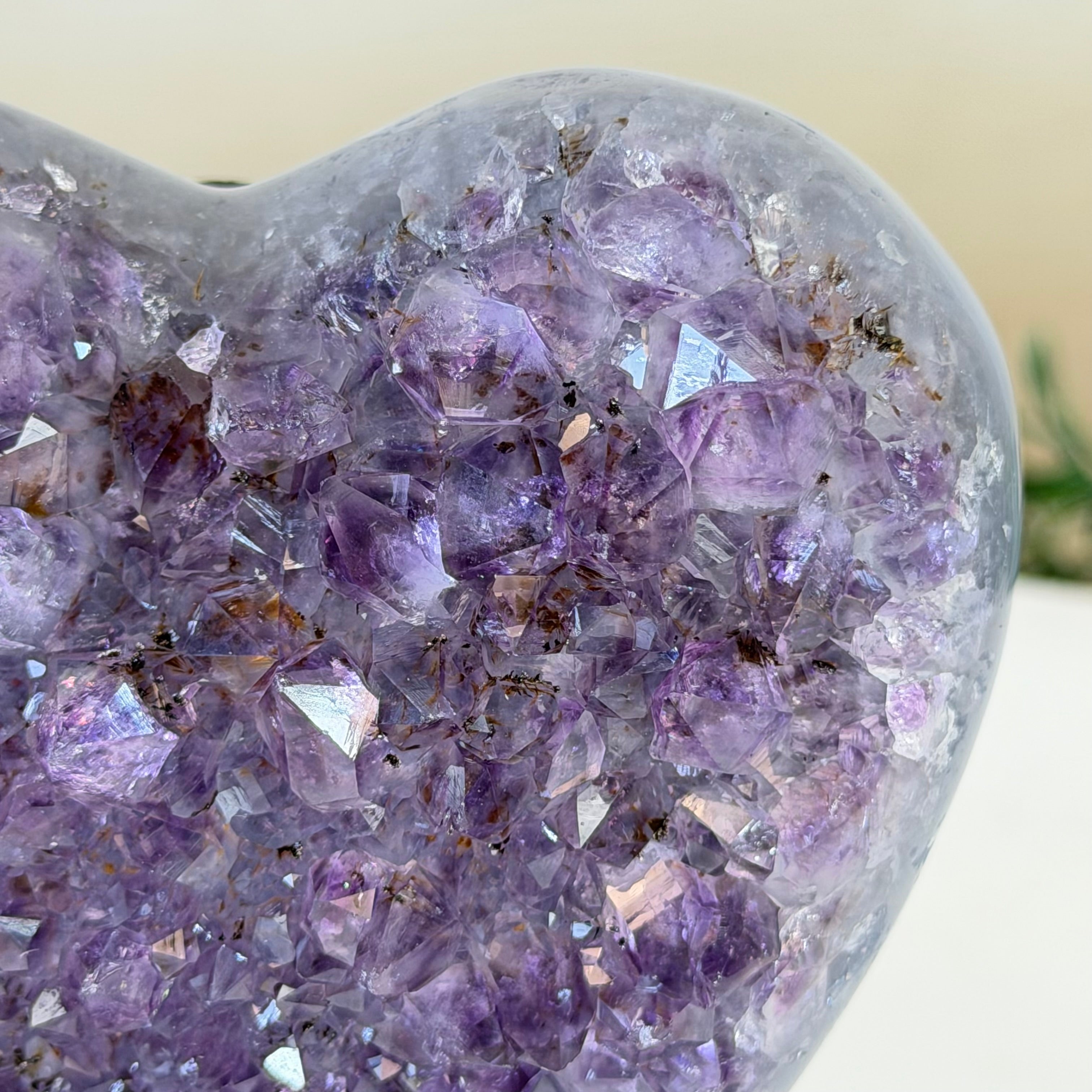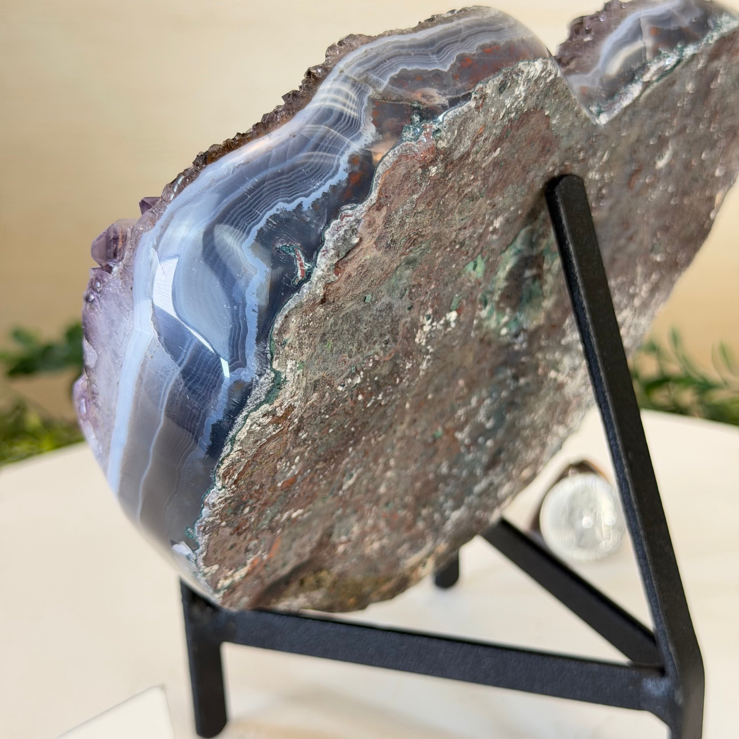 Brazil Gems® imports beautifully hand polished Geode Hearts from Brazil. Artisans in South Brazil mastered the technique to make geode hearts, a very labor-intensive task that requires a lot of skill and precision. The result is a beautiful piece that will certainly make a statement in any room. These heart-shaped geodes also make wonderful, long-lasting gifts for loved ones.