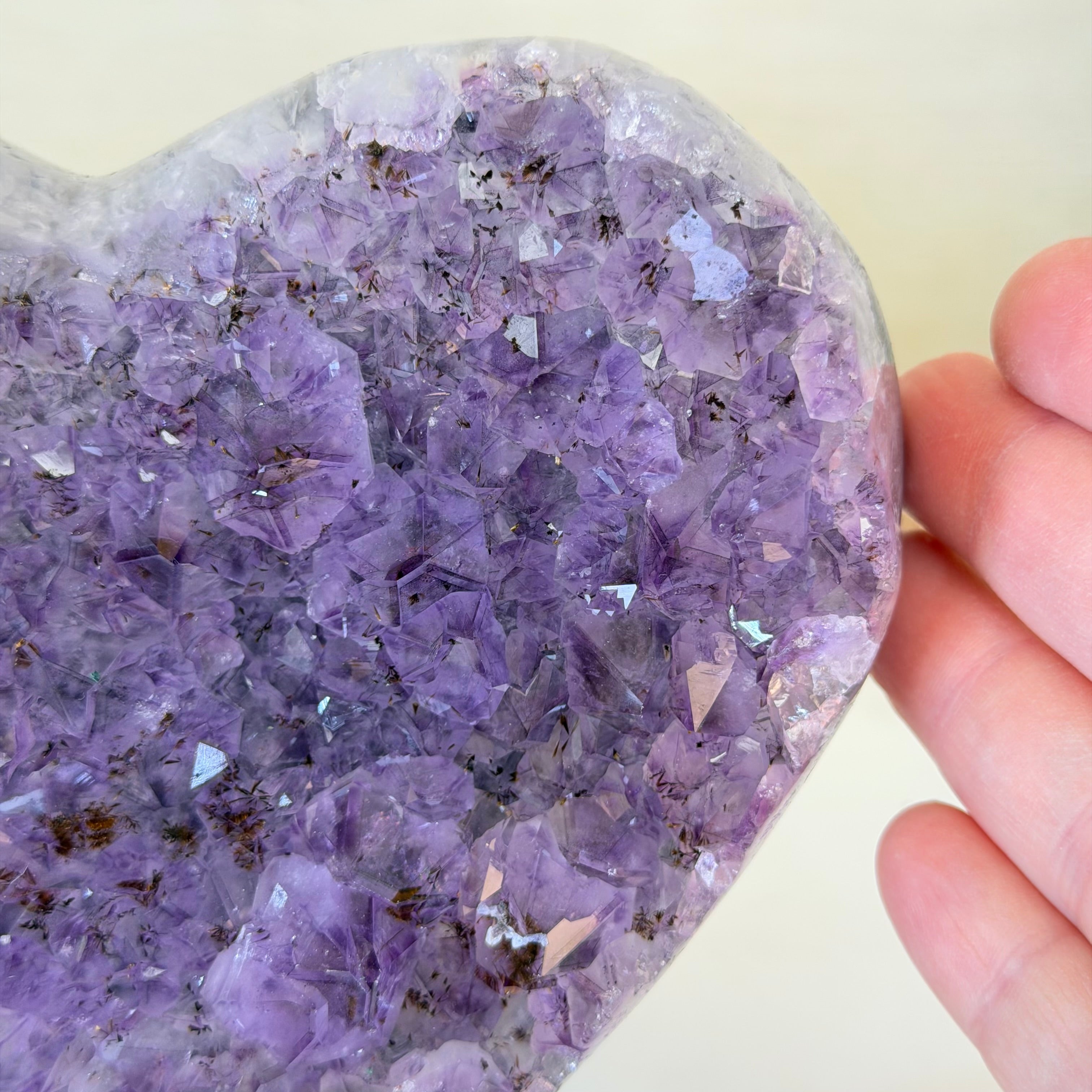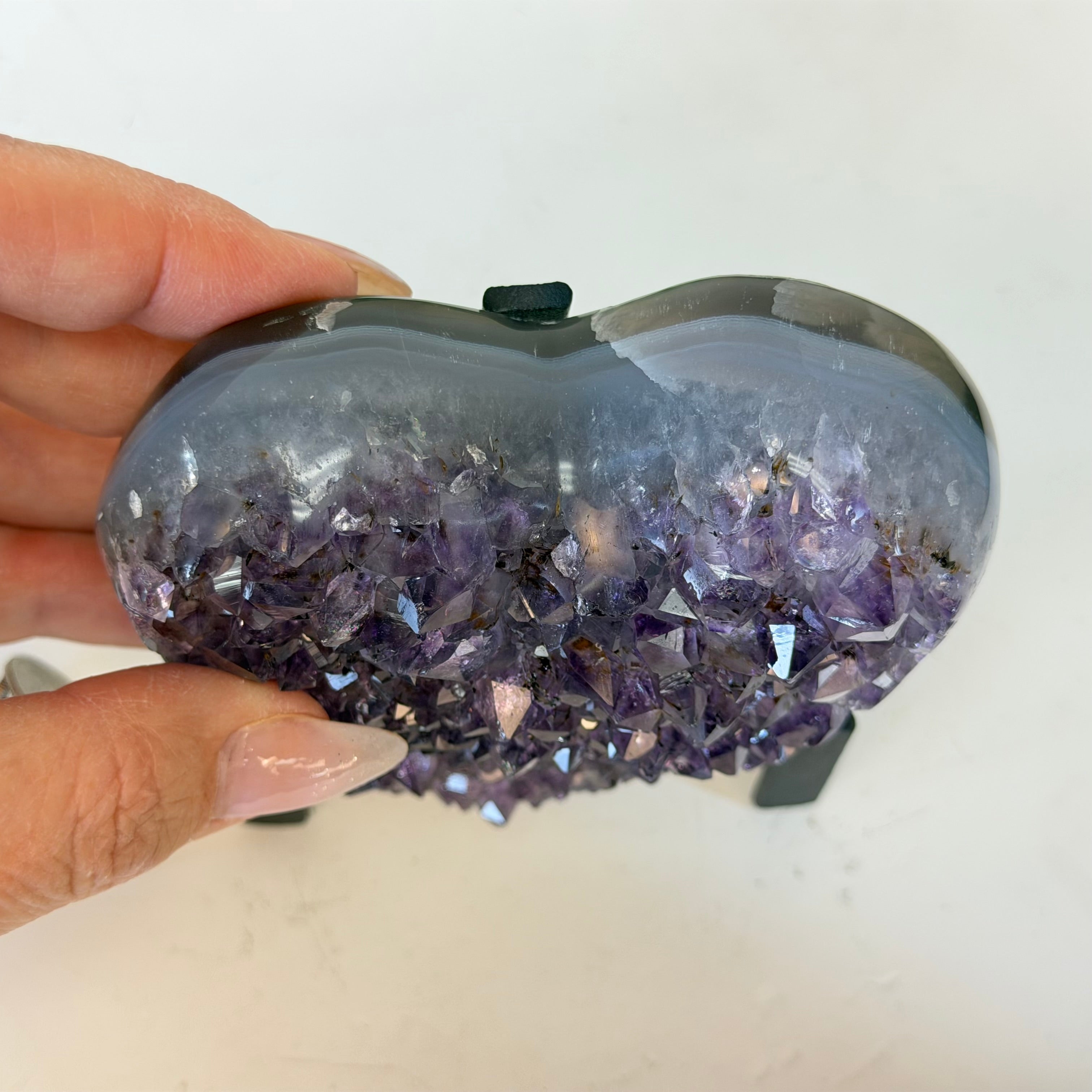 Brazil Gems® brings you beautifully hand polished Geode Hearts from Brazil. Artisans in South Brazil mastered the technique to shape geodes, a very labor-intensive task that requires a lot of skill and precision. The result is a beautiful piece that will certainly make a statement in any room. These heart-shaped geodes also make wonderful, long-lasting gifts for loved ones.