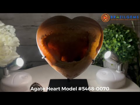 Polished Agate Heart Geode on a Metal Stand, 4.2 lbs & 7.1" Tall, Model #5468-0070 by Brazil Gems