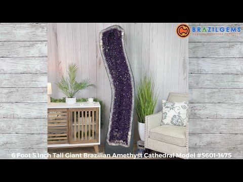 A Majestic statement piece for your space, this 6 Foot 5 Inch awe-inspiring Brazilian Amethyst Cathedral, a Super Quality geode, commands attention with its towering presence and vibrant energy by Brazil Gems®.