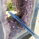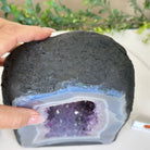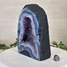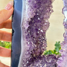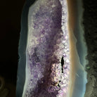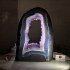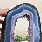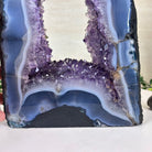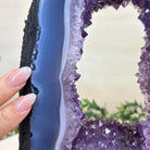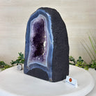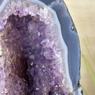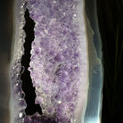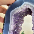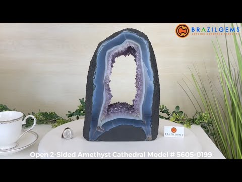 Discover the sophistication of this Extra Quality Open 2-Sided Brazilian Amethyst Cathedral by Brazil Gems®. It has nicely shaped amethyst points with violet colors and polished edges with elegant Agate bands. Very unique piece!