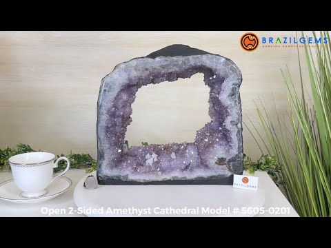 Discover the sophistication of this Extra Quality Open 2-Sided Brazilian Amethyst Cathedral by Brazil Gems®. It has nicely shaped amethyst points with violet colors and polished edges. A unique piece!