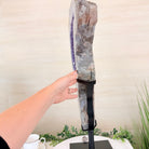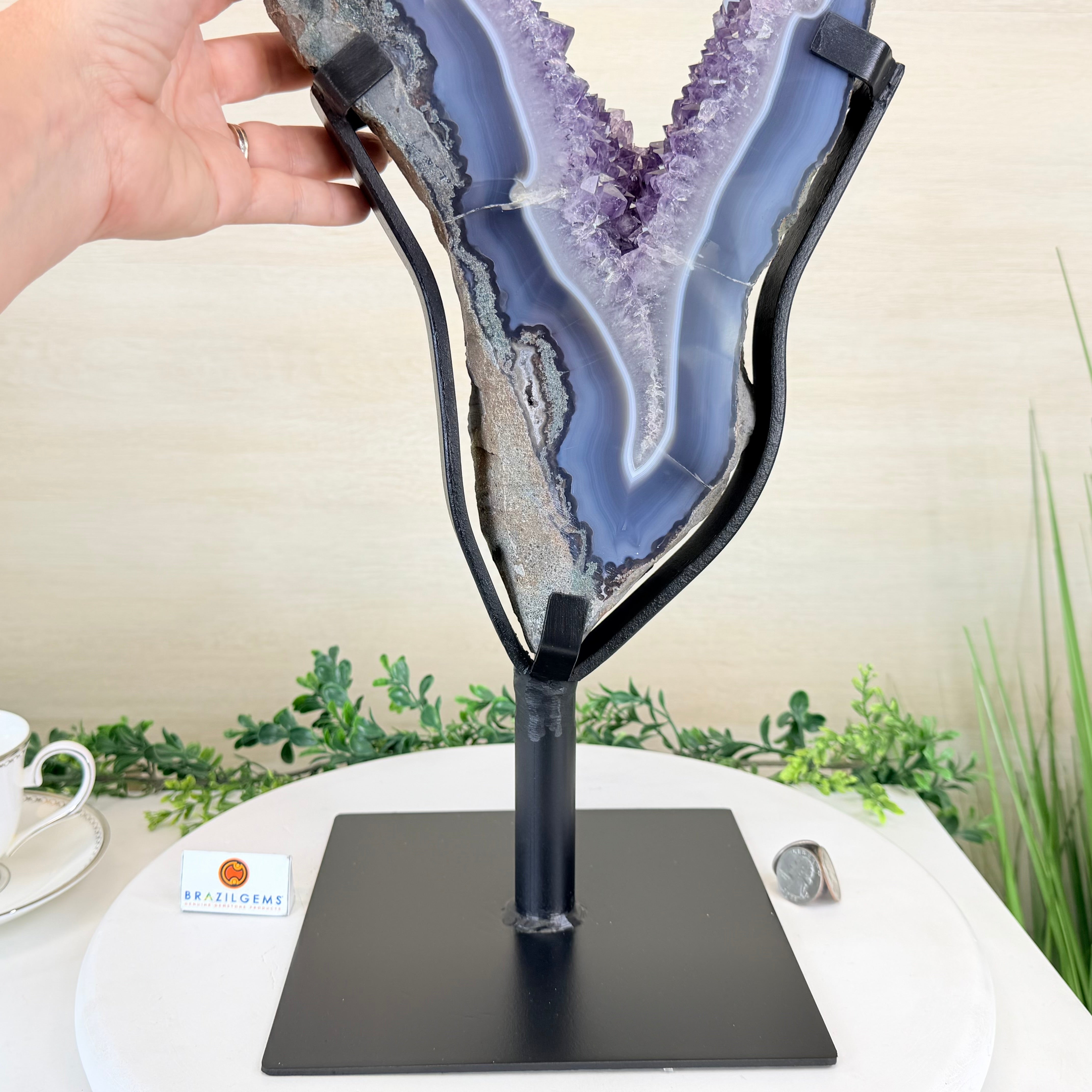 Disclaimer: This is a natural gemstone crystal sold by Brazil Gems® as is and as you see it in its images and video. It is the exact item you will receive. It may contain natural imperfections as well as imperfections, scratches, broken edges and repairs from the extraction, polishing and mounting processes. The base has been custom welded to fit this crystal and painted black. At Brazil Gems® we make every effort to get measurements as exact as possible but they are done by human hands and eyes and therefore may have minor discrepancies.