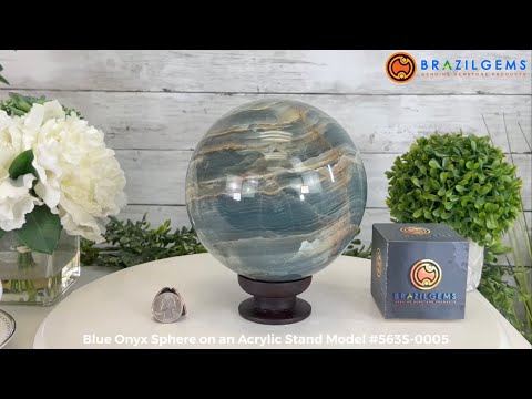 Add a touch of elegance to your home decor with this Brazilian Blue Onyx Sphere on a Wood Stand from Brazil Gems®.