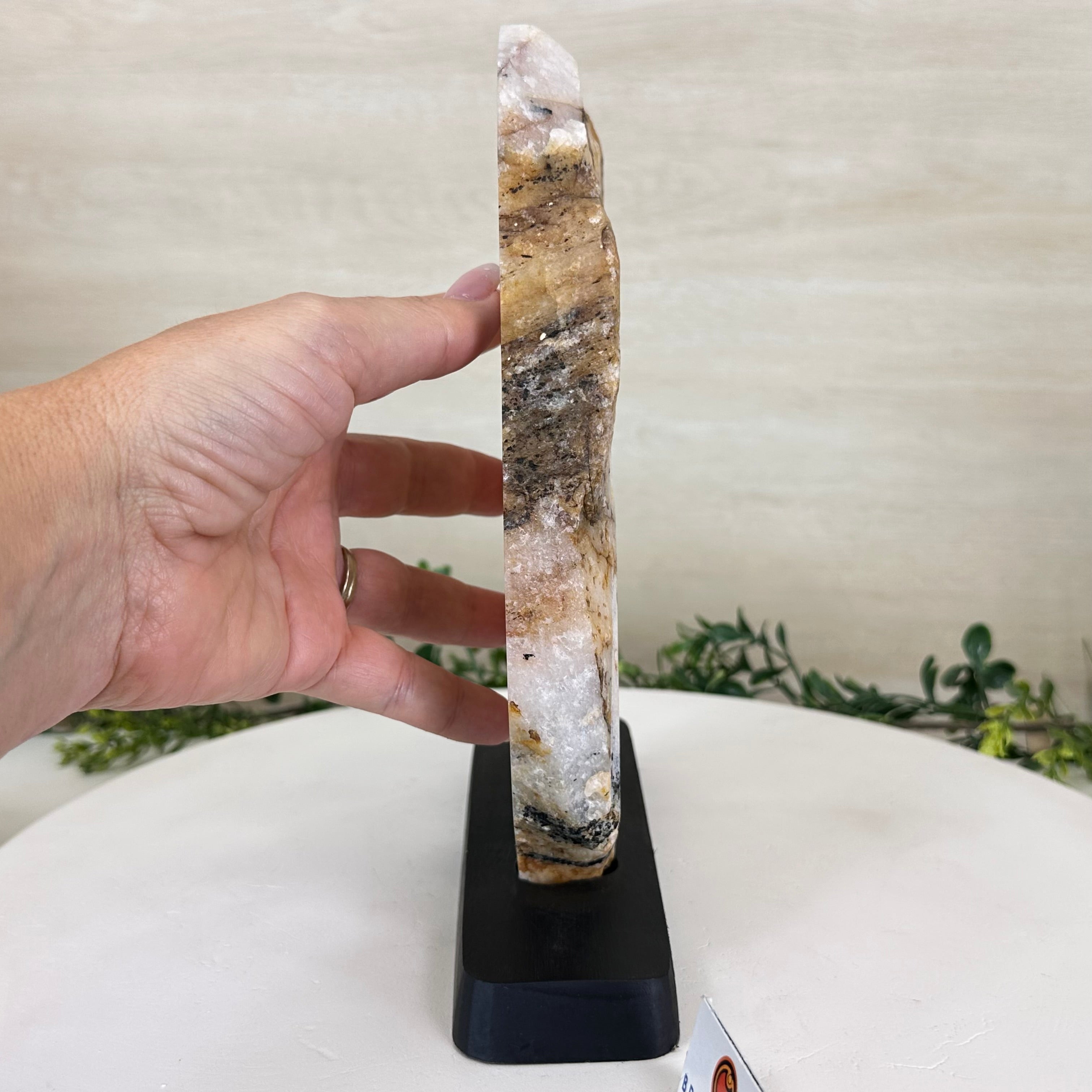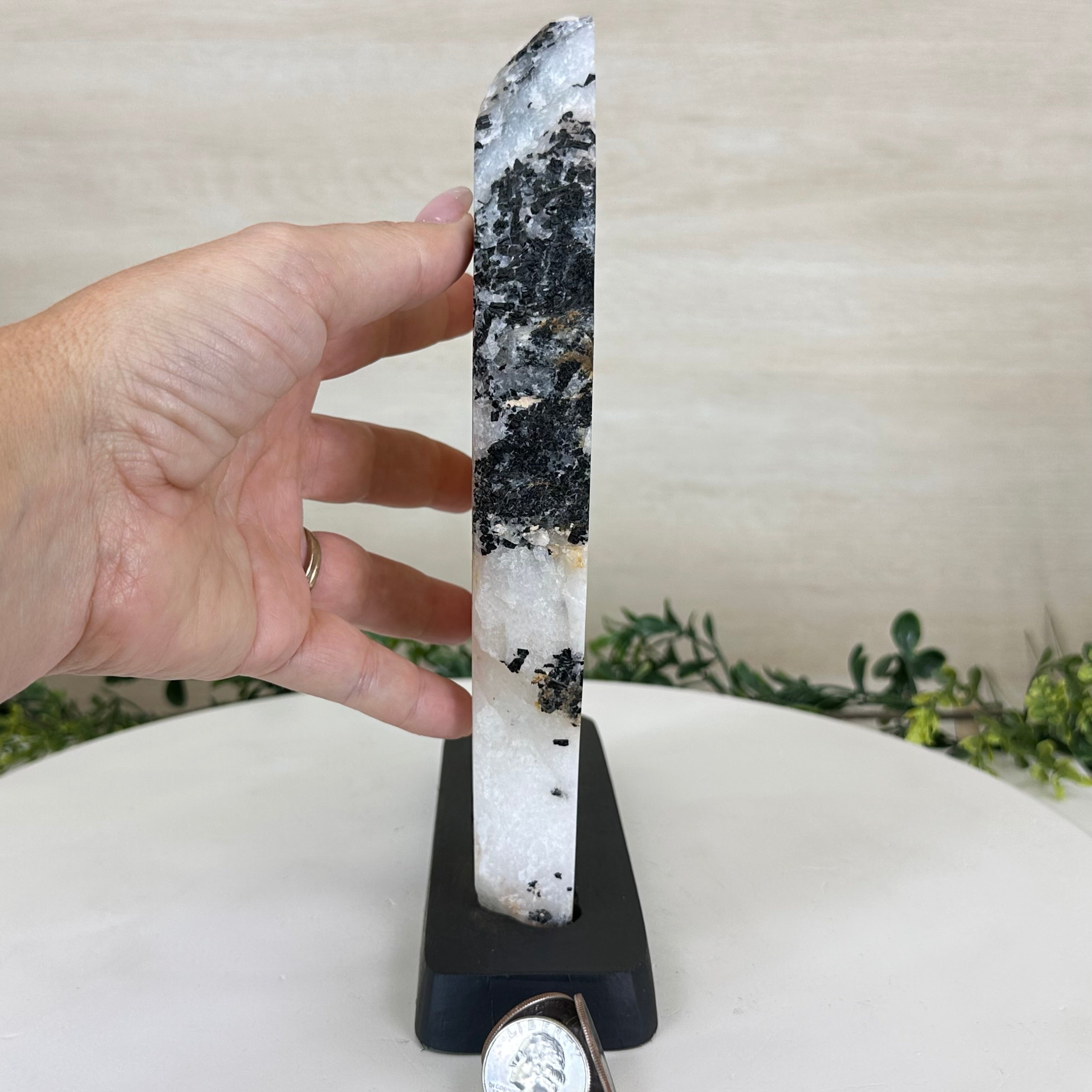 Tourmalinated Quartz Polished Slice on a Wood Base 9.3" Tall #6100TQ-004