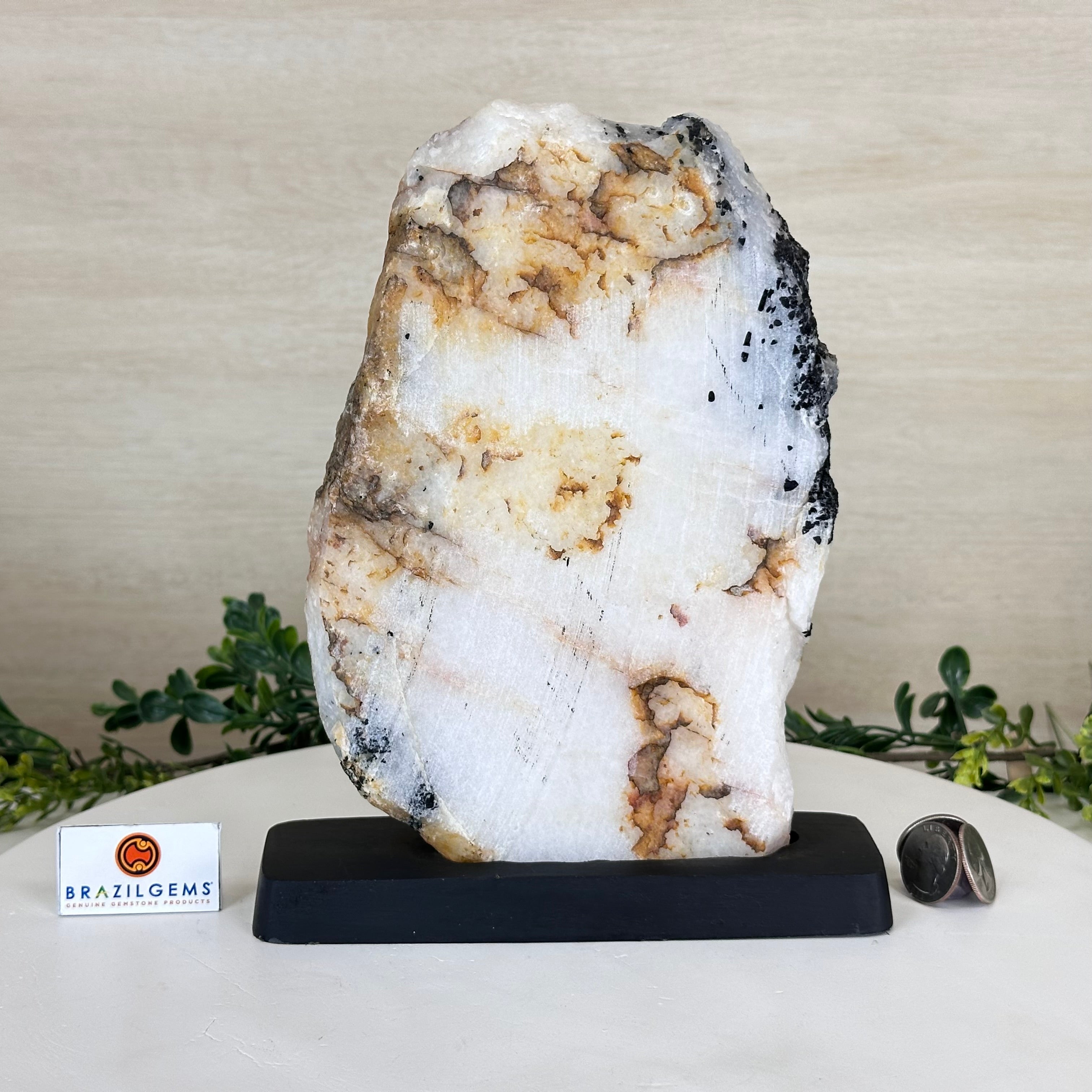 Disclaimer: This is a natural gemstone crystal sold by Brazil Gems® as is and as you see it in its images. It is the exact piece you will receive. It may contain natural imperfections as well as imperfections, broken edges and scratches from the extraction, slicing, polishing and mounting processes. The gemstone slice has been glued into its wood base. The wood base has been painted black. At Brazil Gems® we make every effort to get measurements as exact as possible but they are done by human hands and eyes and therefore may have minor discrepancies.